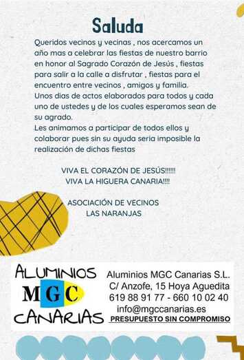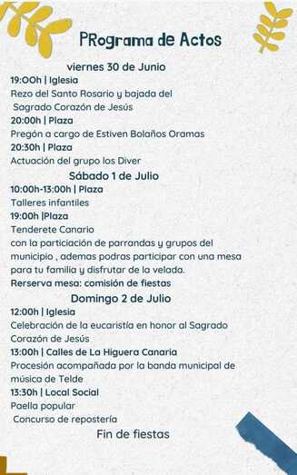 La Higuera Canaria inicia este viernes sus fiestas en honor al Sagrado Corazón de Jesús con el pregón a cargo de Estiven Bolaños, que tendrá lugar a las 20.00 horas en la plaza del barrio, seguido por la actuación del grupo los Diver. Previamente, a las 19.00 horas, será el rezo del Santo Rosario y la bajada del Sagrado Corazón de Jesús en la Iglesia.
