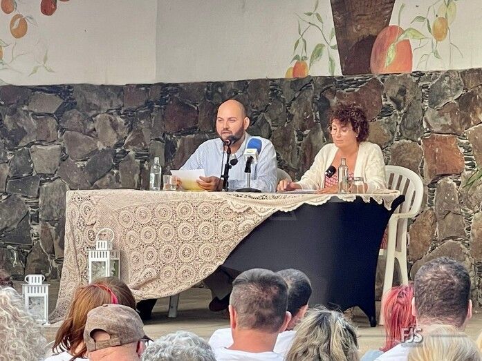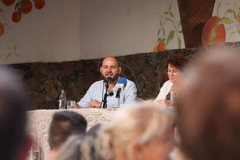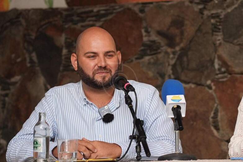 Estiven Bolaños, dirigente vecinal de La Viña y secretario político del grupo municipal de CC en el Ayuntamiento de Telde, arengó esta tarde-noche a los vecinos de La Higuera Canaria a disfrutar de las fiestas en honor del Sagrado Corazón durante el pregón que leyó en la plaza pública situada junto a la iglesia de este barrio teldense.