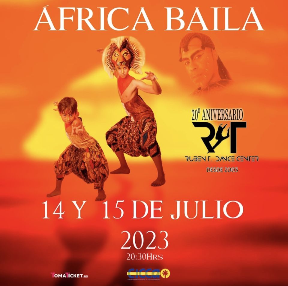 La primera parte del espectáculo será África Baila, un musical inspirado en el Rey León . Como protagonistas estarán Javier Toca (Mufasa en el Rey León de Madrid ) y en el papel de Simba a Pablo Suárez, antiguo alumno de la escuela (actualmente en el Real Conservatorio Profesional de Danza Marienmma en Madrid).
