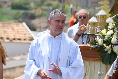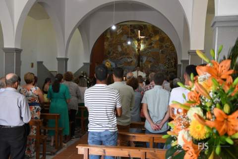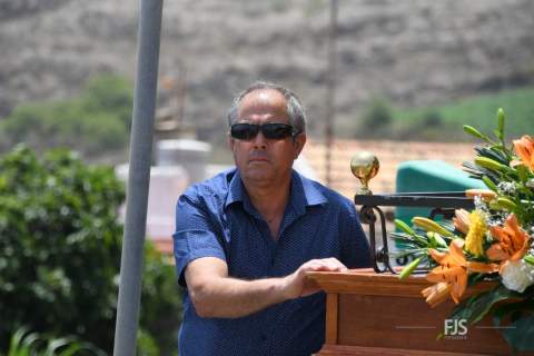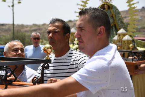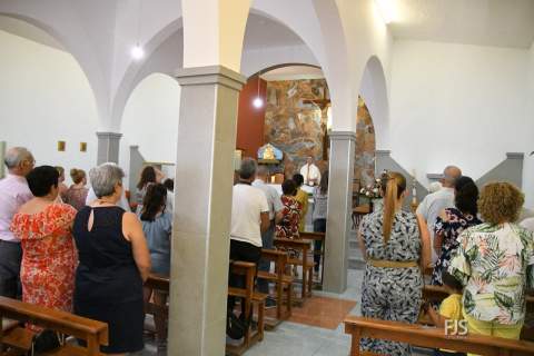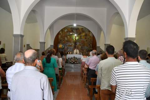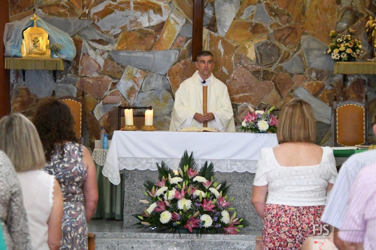 La comitiva religiosa conformada por los dos tronos apuró su salida del pequeño templo minutos después de la finalización de la eucaristía oficiada a las 12.00 horas por el sacerdote Ricardo Miranda, responsable pastoral de la zona.