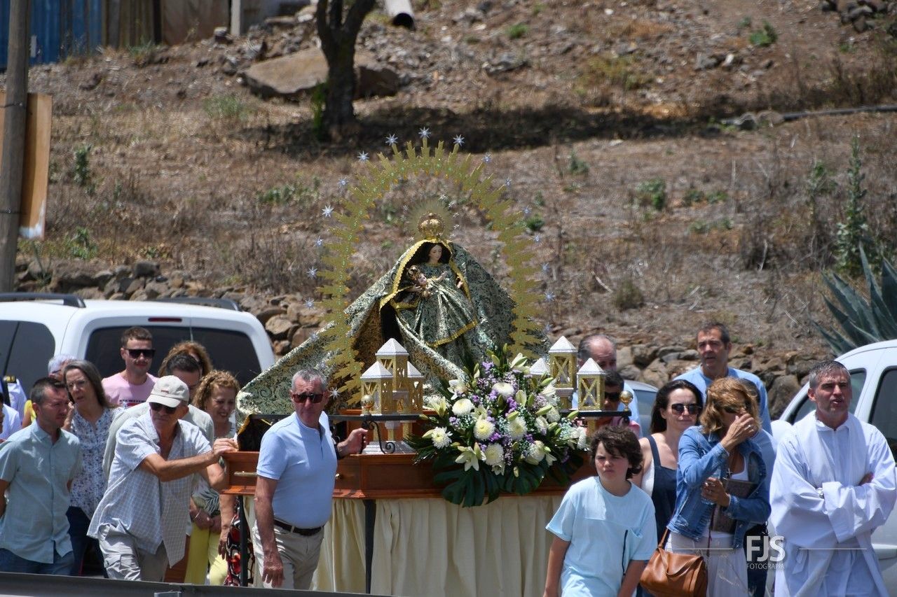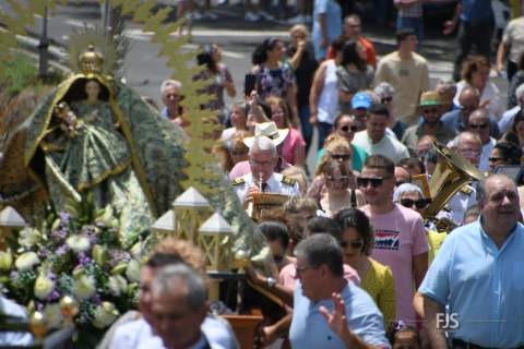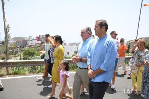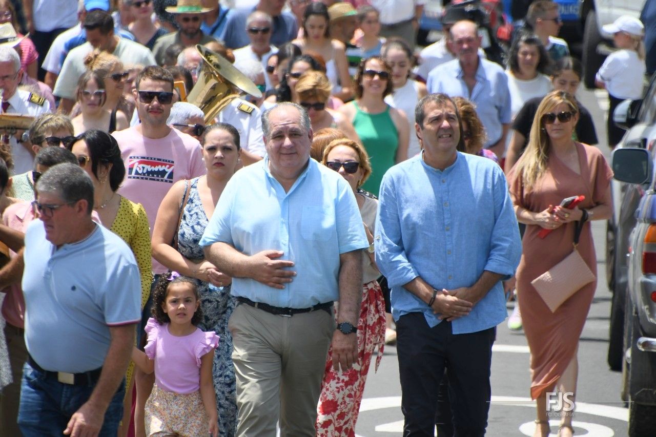 Feligreses y autoridades municipales, encabezadas por el alcalde Juan Antonio Peña y el concejal del Distrito Cumbre, Juan Martel, acompañaron la procesión durante todo el recorrido.