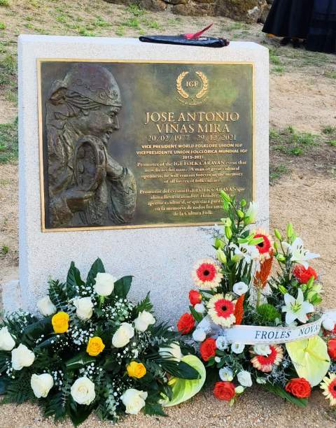 En este evento estuvo también presente el alcalde de la localidad, Luis Menor, el presidente de la Unión Mundial de Folclore, Dorel Cosma, y miembros de la Federación Internacional, como Gustavo Hernández. Durante el mismo se descubrió una placa de bronce dedicada a José Antonio Viñas sobre un monolito de una piedra situado en el atrio del Santuario dos Gozos.