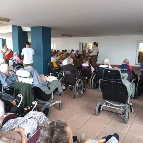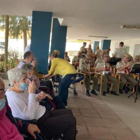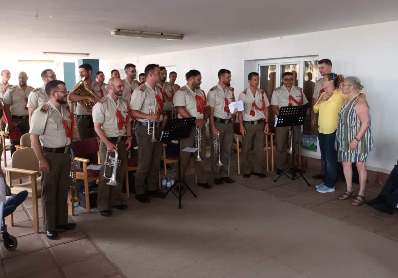La Banda de Guerra Nº1 de la Brigada Canaria XVI visitó en la mañana de este martes a los mayores de la residencia de Taliarte, en la que los ancianos pudieron disfrutar de un espectáculo musical.
