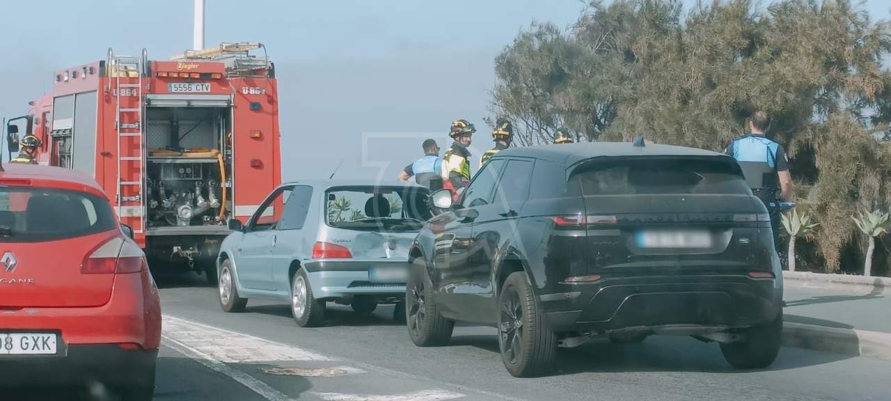 Un accidente de tráfico a la entrada del Centro Comercial El Mirador está provocando en la tarde de este martes retenciones de tráfico en ambos sentidos de la GC-1.