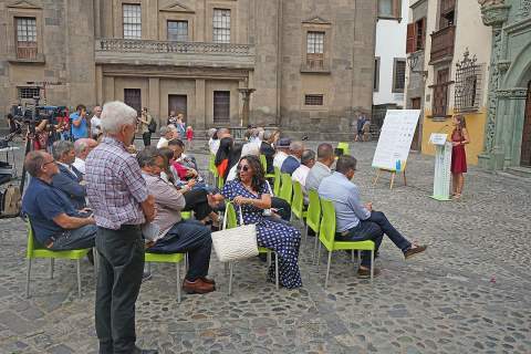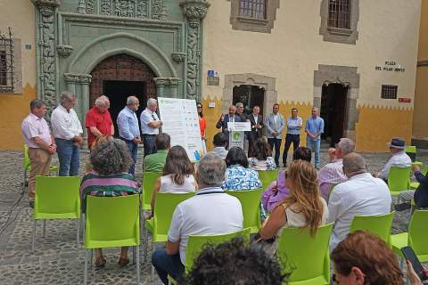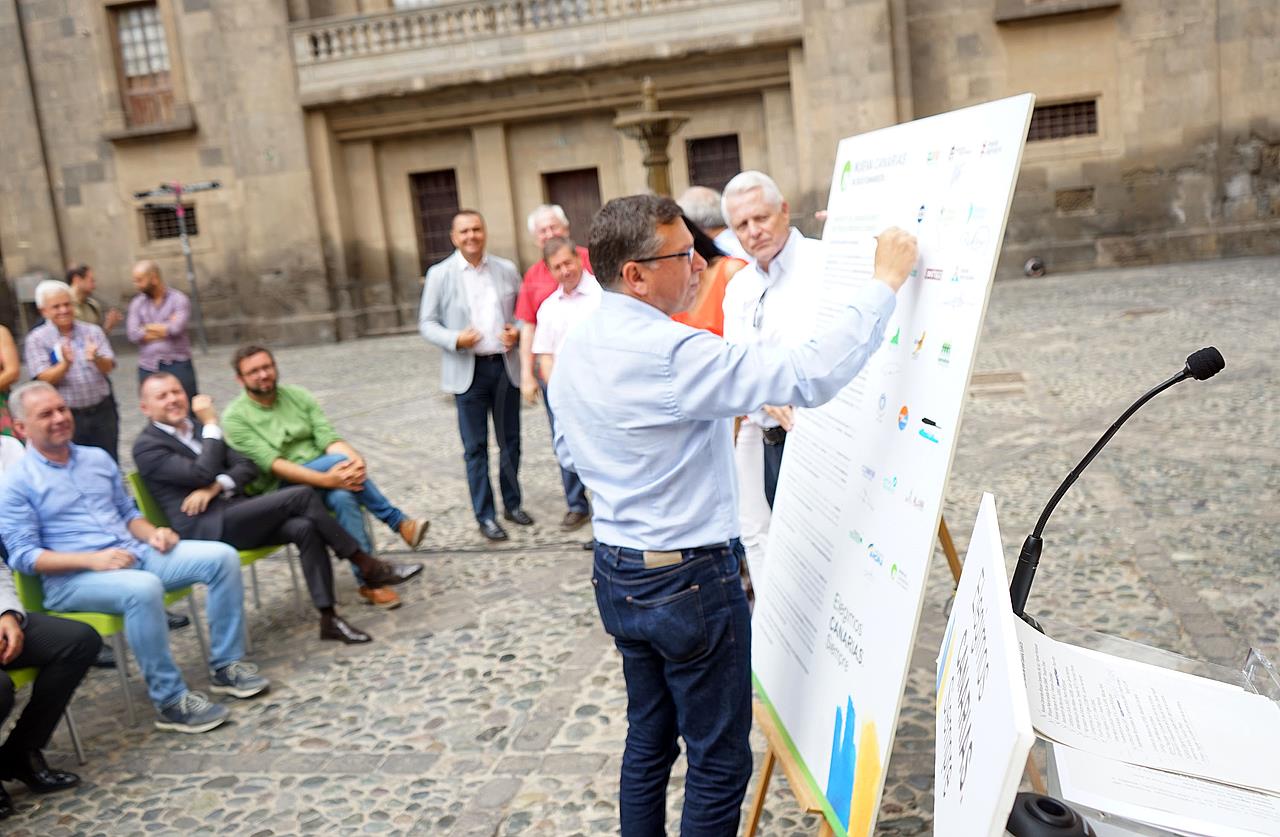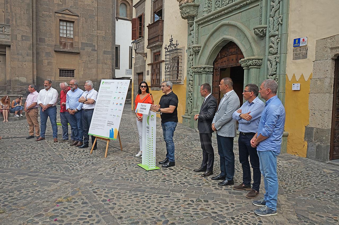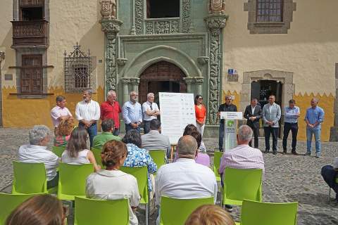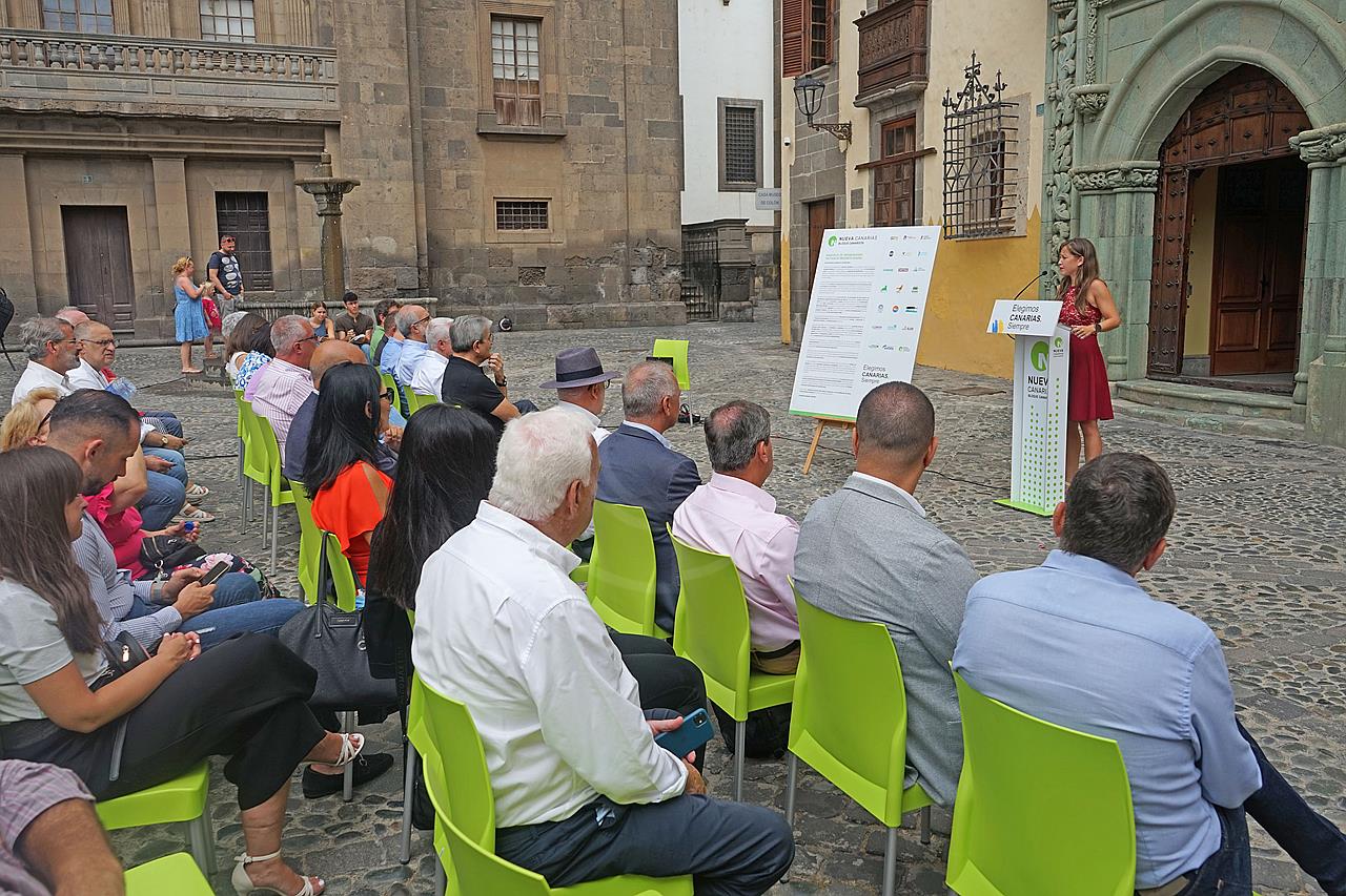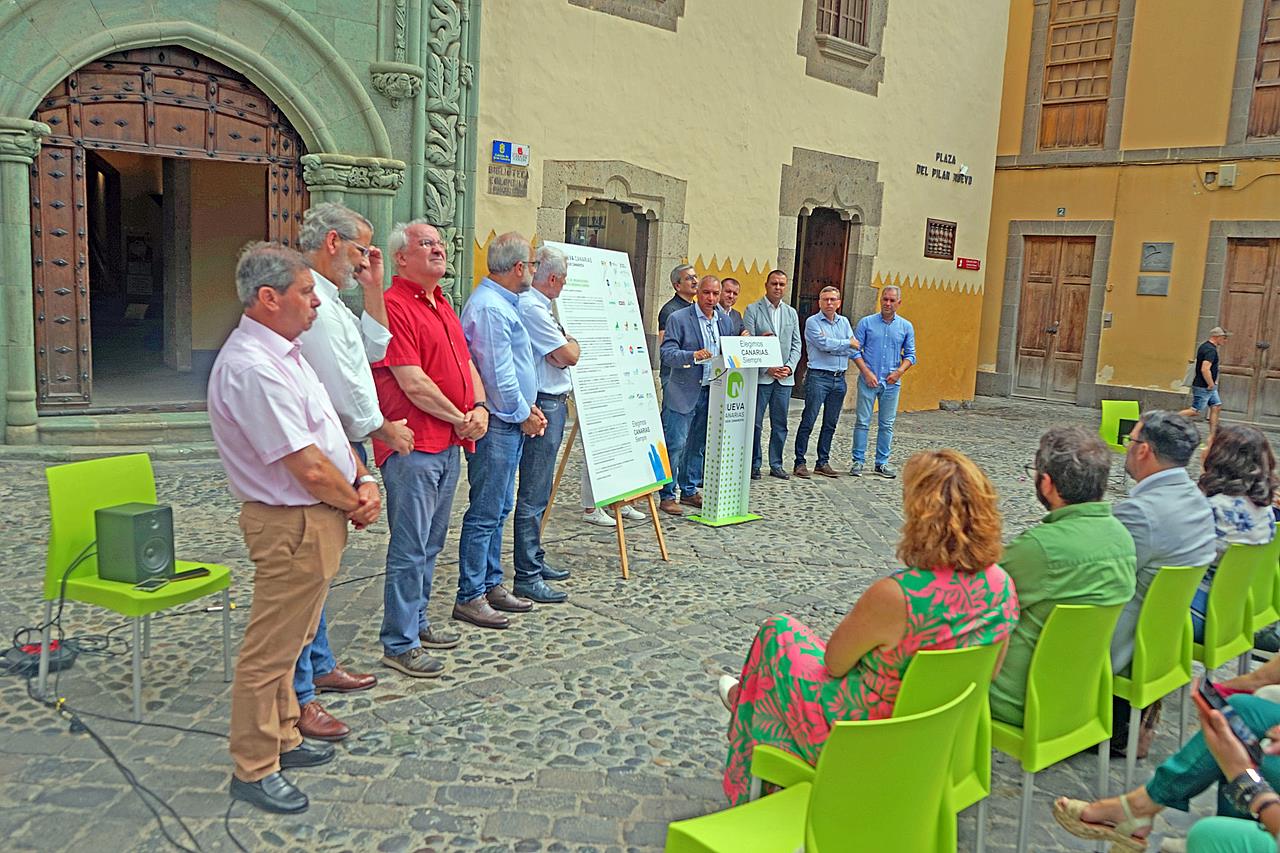 En la emblemática plaza del Pilar Nuevo de Vegueta de Las Palmas de Gran Canaria, como escenario del acto, representantes del Bloque Nacionalista Rural (BNR), Roque Aguayro (RA), la Asociación de Barrios (ASBA), Juntos por Guía (JXG), Alternativa por San Mateo (AxSM), Agrupación de Electores por Tejeda (AET), Compromiso por Firgas (Comfir), Forum Drago (FD), Unión Veguera (UV), Alternativa Local por Antigua (ALxAN), Fuerteventura Avanza (FA), Juntos por Pájara (JxP), Asambleas Municipales de Fuerteventura (AMF), Unidos por Betancuria (UPBE), Contigo, Ahora Tegueste, Agrupación Independiente de El Sauzal (AISA), A’Gara, Hablemos Ahora y Primero Teguise y NC suscribieron un documento de compromisos con las canarias y los canarios para lograr una representación canaria en Madrid libre de tutelas; leído por Carlota Guerra.