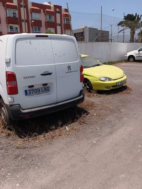 Vecinos del sector de Clavellinas, en la costa de Telde, denuncian que en el aparcamiento de tierra ubicado en la calle Doce Octubre hay dos vehículos abandonados desde hace años.