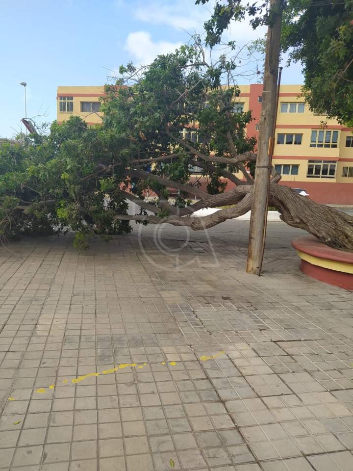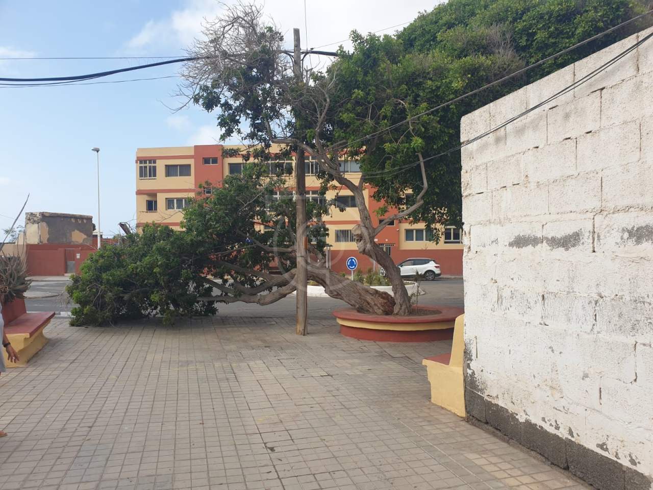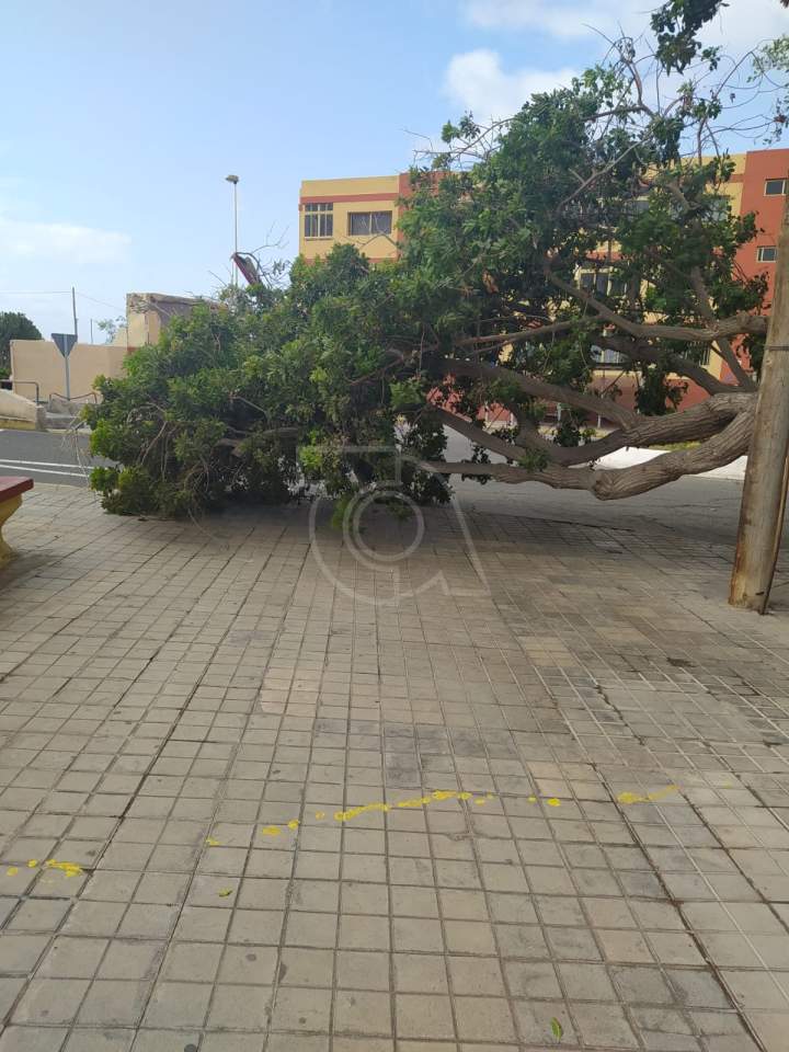 Incidente en Melenara por la caída de un árbol en la calle Luis Morote, frente a la parada de guaguas. En un parterre en forma de banco que frecuentan los vecinos del lugar.