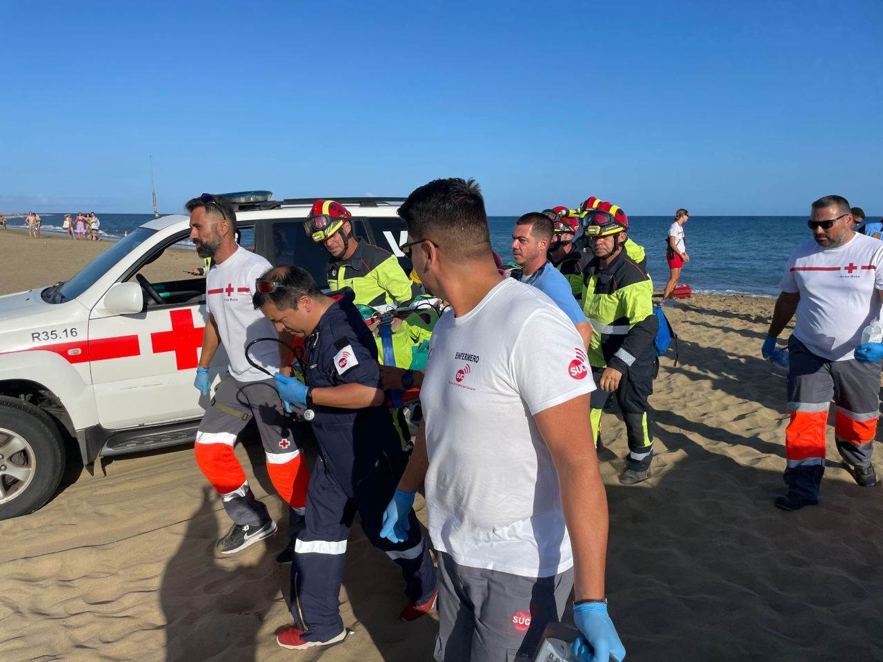 Un joven de 23 años se encuentra en estado grave tras ser rescatado del mar en la playa de Maspalomas, en Gran Canaria, posiblemente tras darse un golpe en las rocas y sufrir posteriormente una parada cardiorrespiratoria.