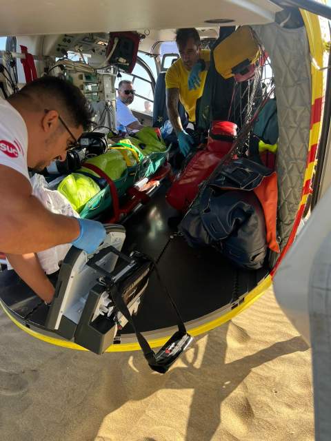 El personal sanitario del Servicio de Urgencias Canario y el médico del centro de salud de la zona, a su llegada a la playa continuaron con la asistencia y tras estabilizar al afectado se procedió a su traslado en un helicóptero medicalizado del SUC que fue activado ante la gravedad del incidente