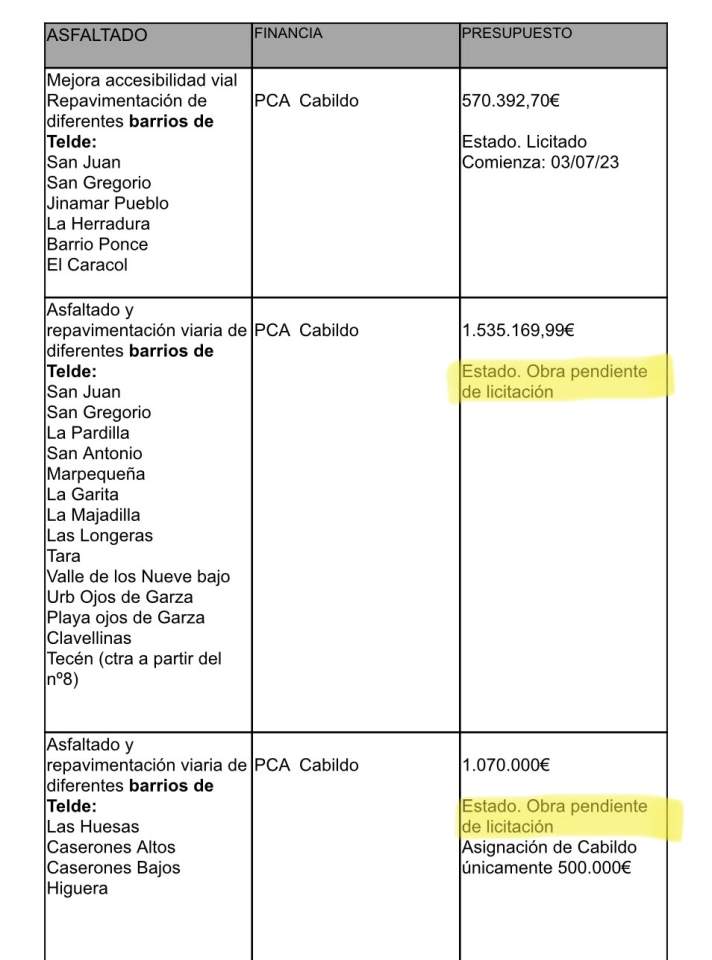 Nueva Canarias se hizo una foto con cartón pluma presentando el plan de asfaltado. Hemos llegado y hemos demostrado que no existía tal plan y que sólo había licitado 570.000 euros. Eso y nada es lo mismo.