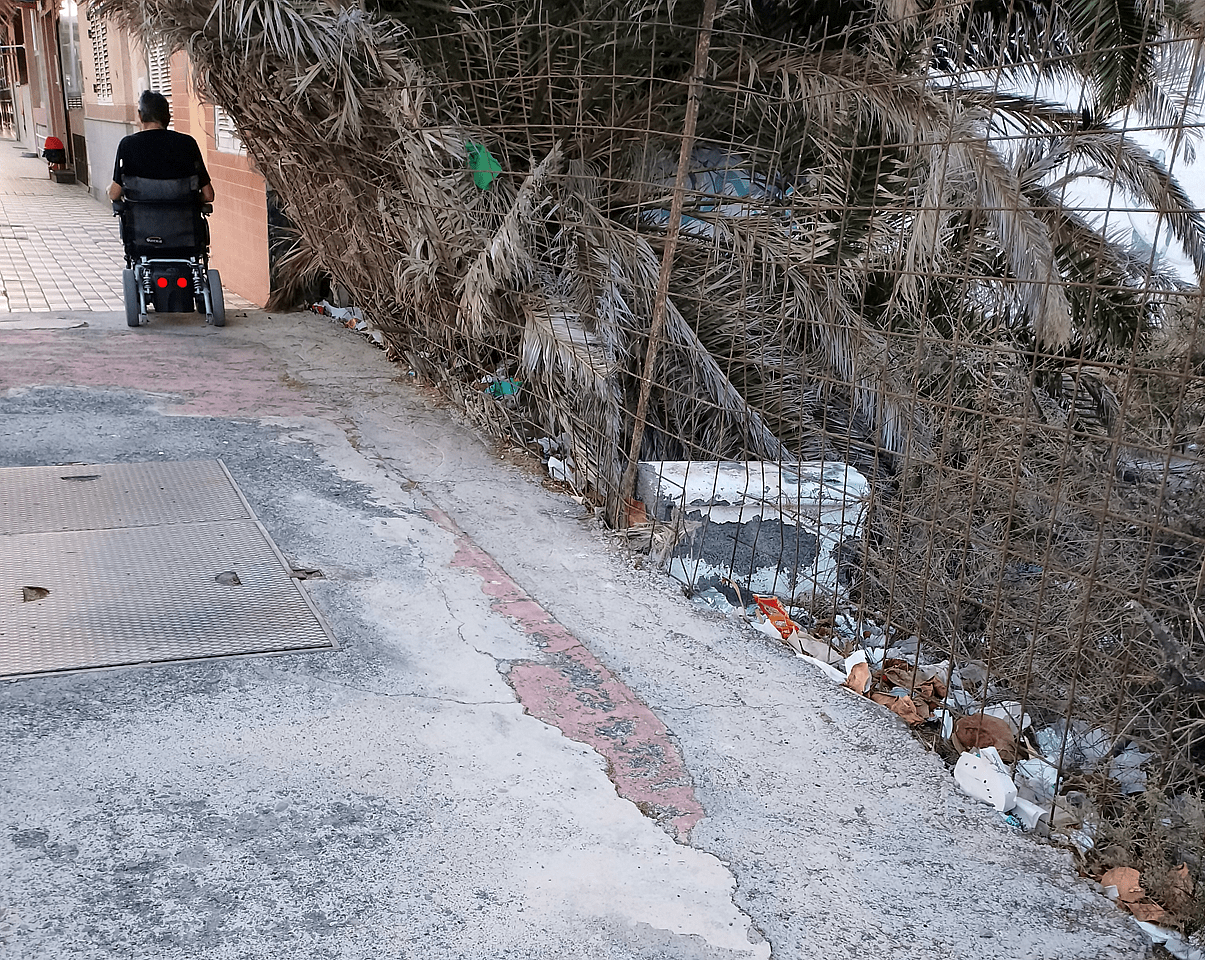 Vecinos de La Garita denuncian el “lamentable estado” de las aceras de la avenida principal de La Garita en el entorno de las terrazas y zona de ocio, donde además abunda la suciedad.