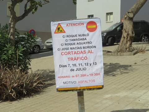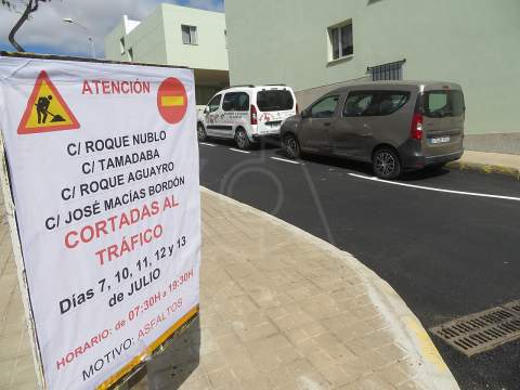 La empresa Hermanos Tito, adjudicataria de los trabajos, tiene ya preparada la maquinaria para, a partir del lunes, repavimentar la calle de Roque Nublo, la principal del barrio y que lo atraviesa de sur a norte, en horario de 7.30-19.30 horas, periodo del día en que las vías afectadas permanecerán cerradas al tráfico para no entorpecer las labores.