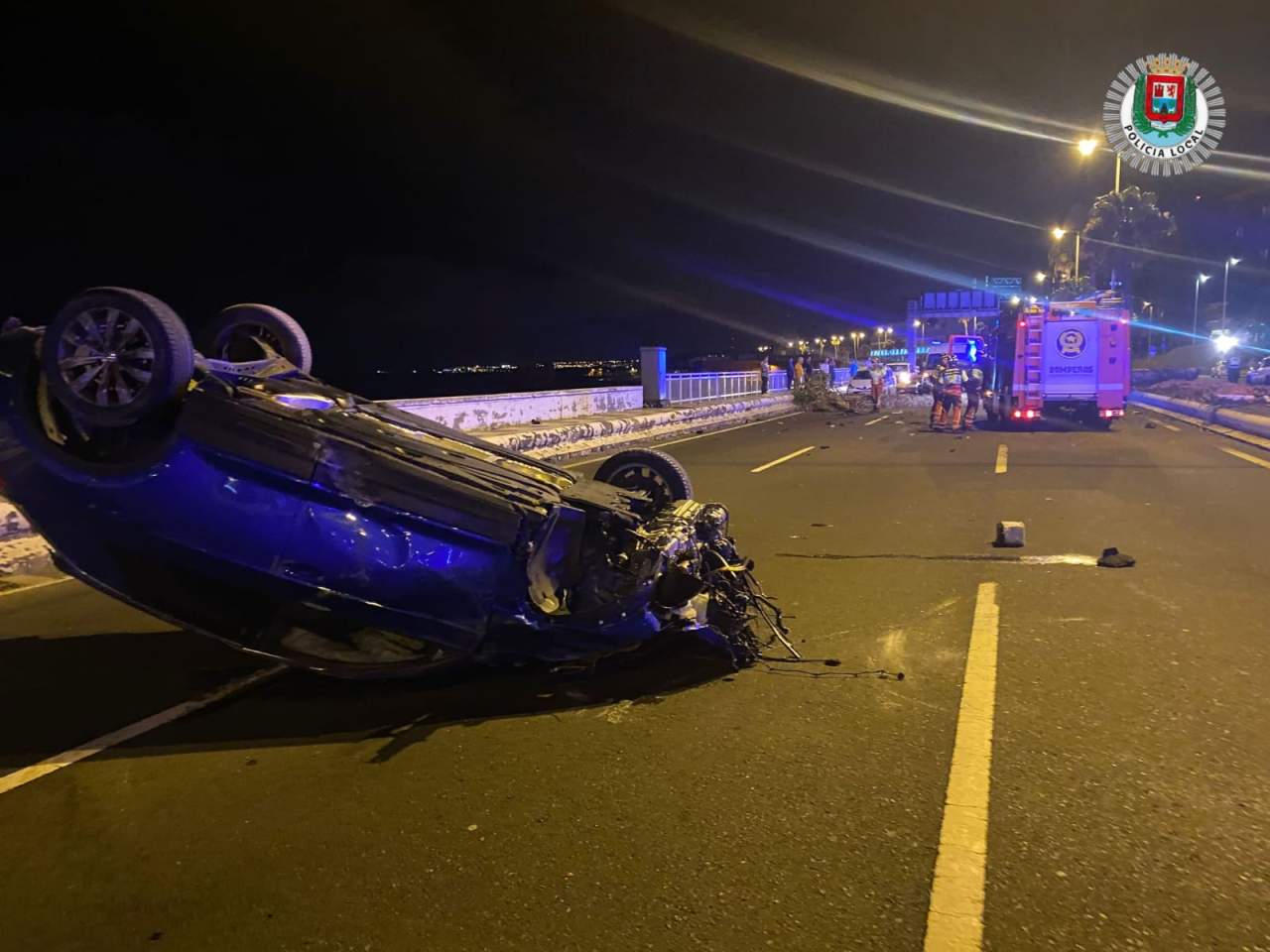 Cuatro personas han resultado heridas, dos de ellas graves, esta madrugada en Las Palmas de Gran Canaria en un atropello y en el vuelvo de un coche, accidentes ocurridos en ambos casos en la avenida marítima.