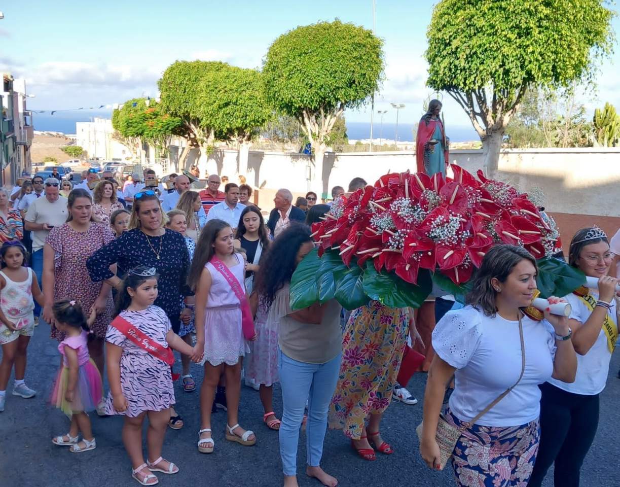 La eucaristía se celebró a partir de las 18.00 horas y luego el trono de Santa Agueda  desfiló con el acompañamiento de feligreses, concejales del Ayuntamiento de Telde y Banda Municipal de Música, en el acto que ponía fin a las fiestas que comenzaron el pasado 30 de junio.