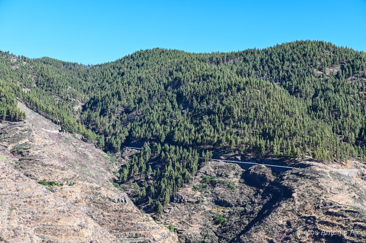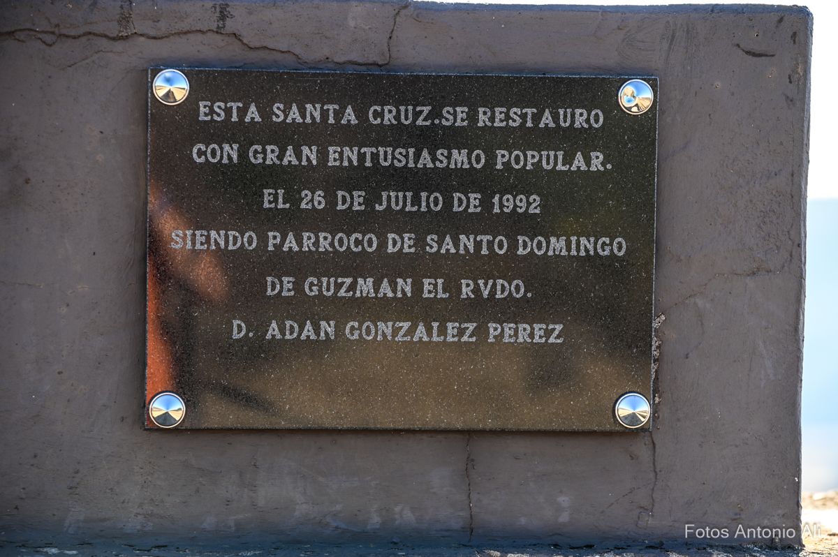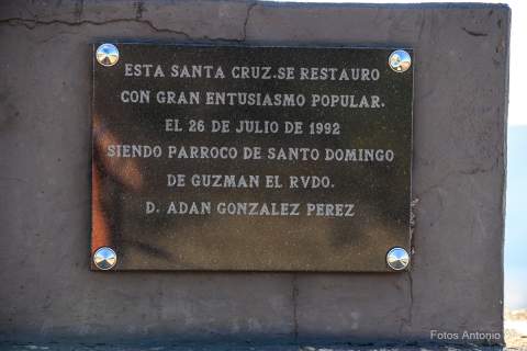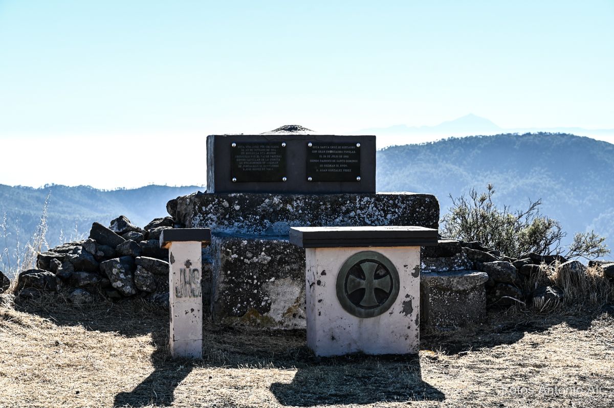 La cruz de tea sigue siendo la original, resplandece ante el fondo del Pinar de Tamadaba y en su base, a media altura, figuran las dos placas citadas, una alusiva al origen de la cruz y otra referente a la restauración del año 1992.