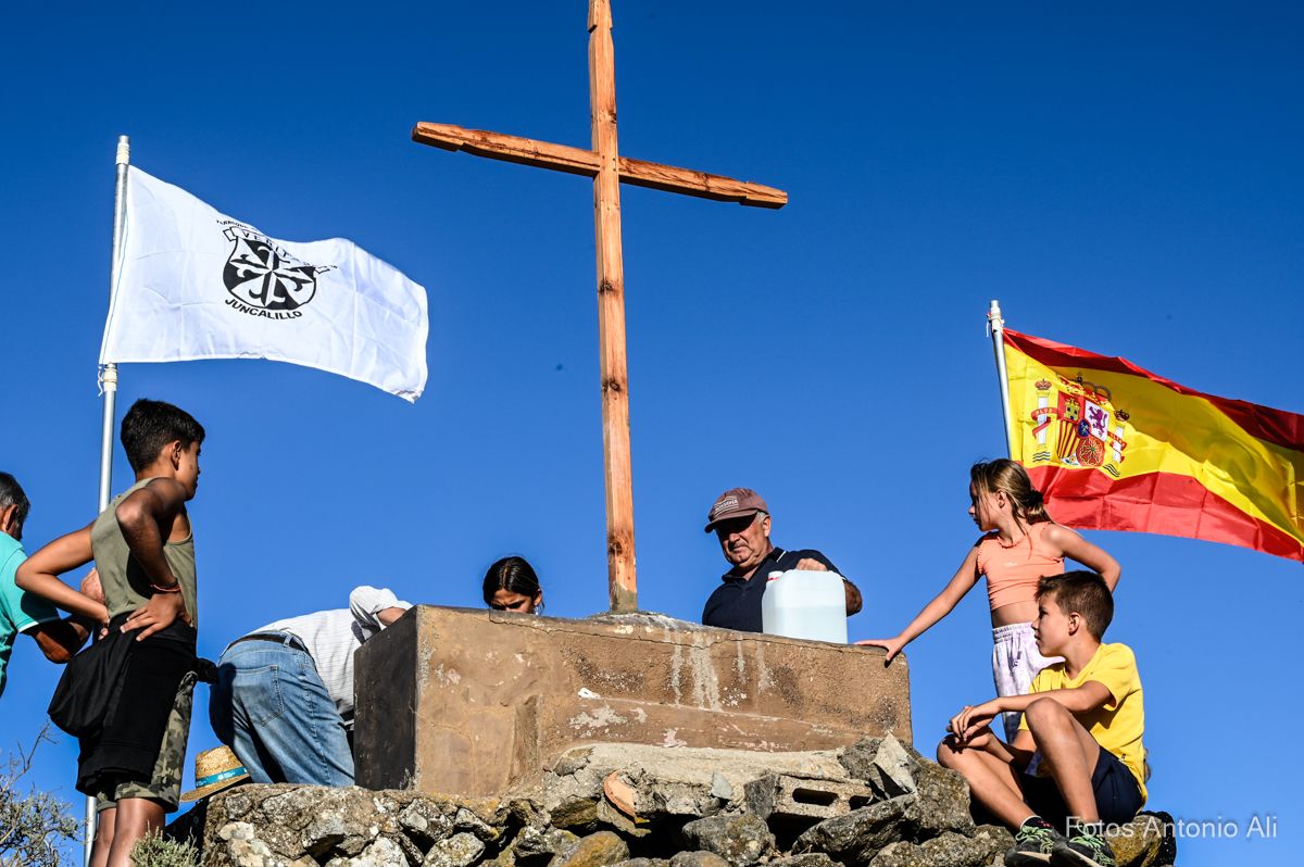 Y la bandera de Espaaña presente, porque en JUNCALILLO siguen todavía en el NACIONALCATOLICISMO (En solemnes procesiones religiosas, el dictador Franco iba "bajo palio". Y muchos sacerdotes hi ieron "trabajos sucios " a favor de la Dictadura)