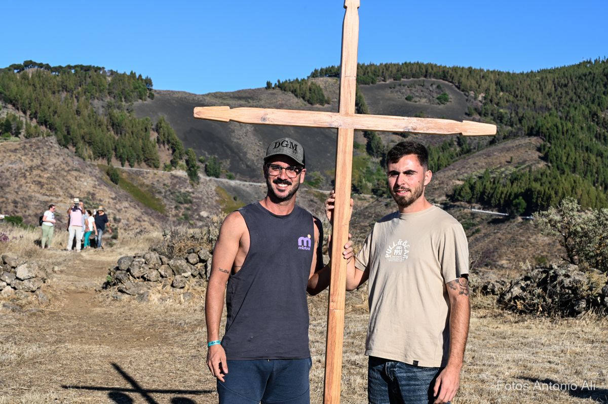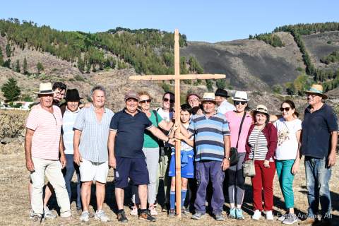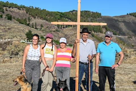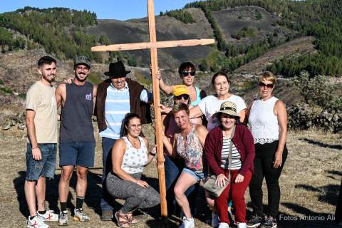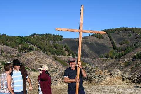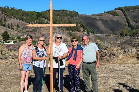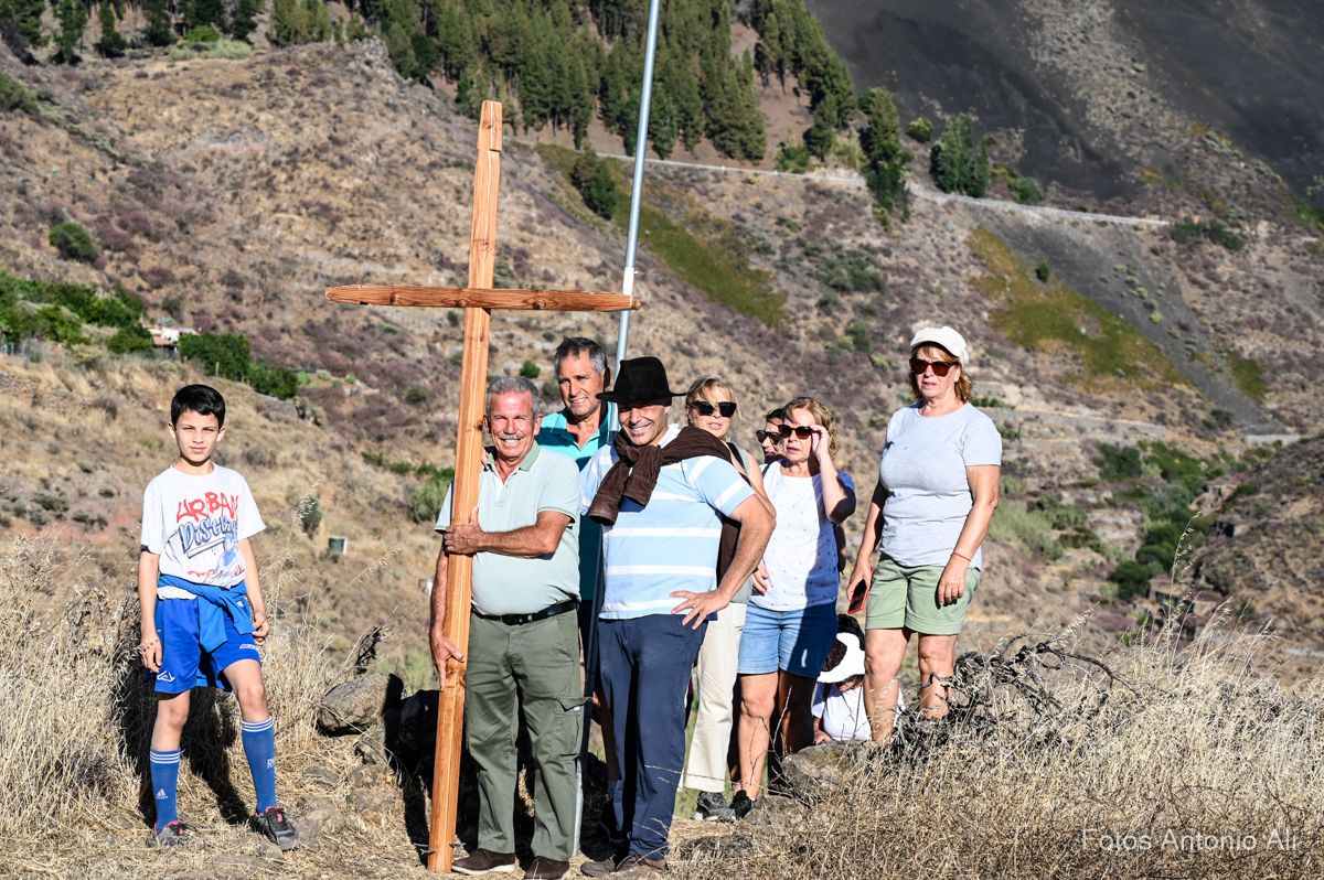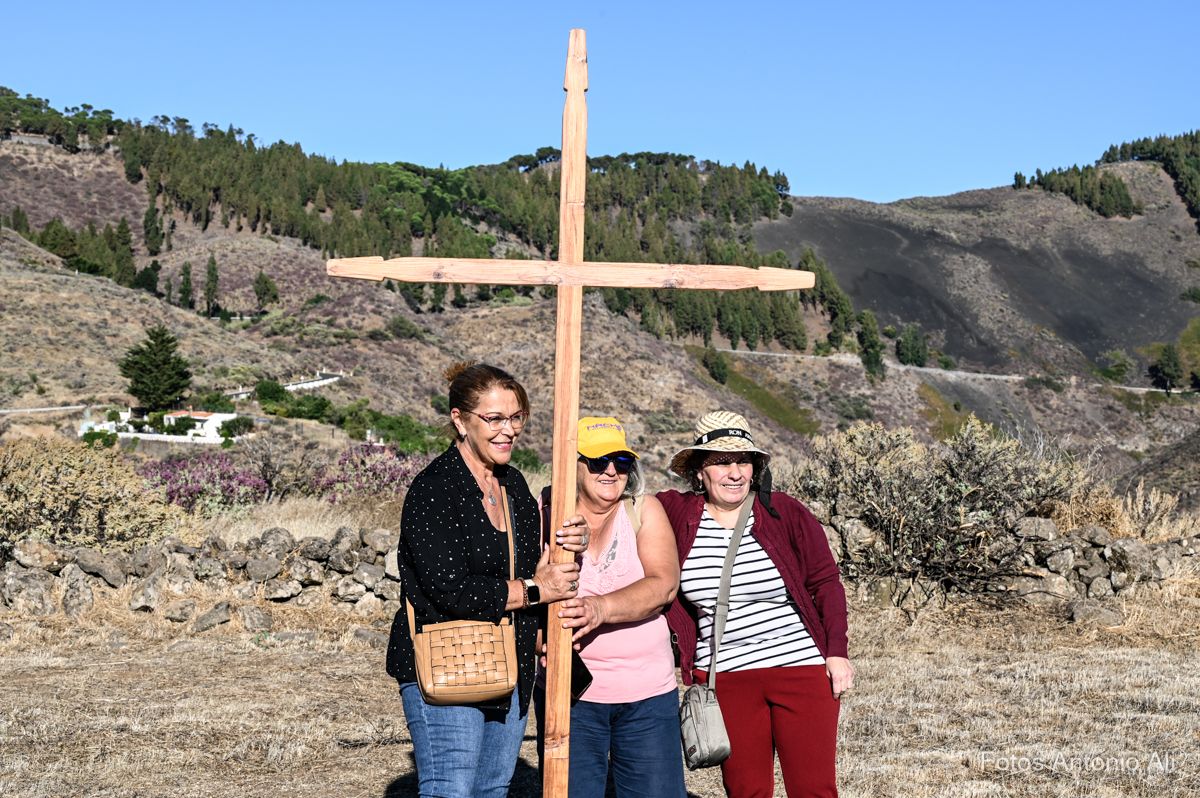 El pueblo de Juncalillo (Gáldar) volvió el pasado sábado a reponer la Cruz de Valerón que hace poco fue dañada por unos vándalos que la dejaron tirada en la explanada junto con los jarrones que la acompañaba.