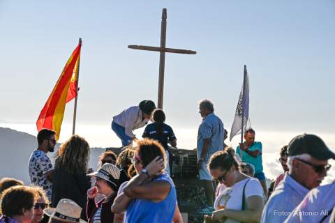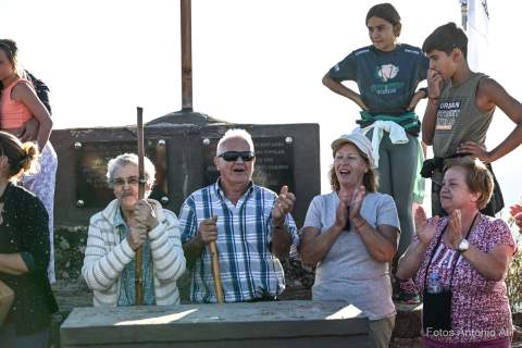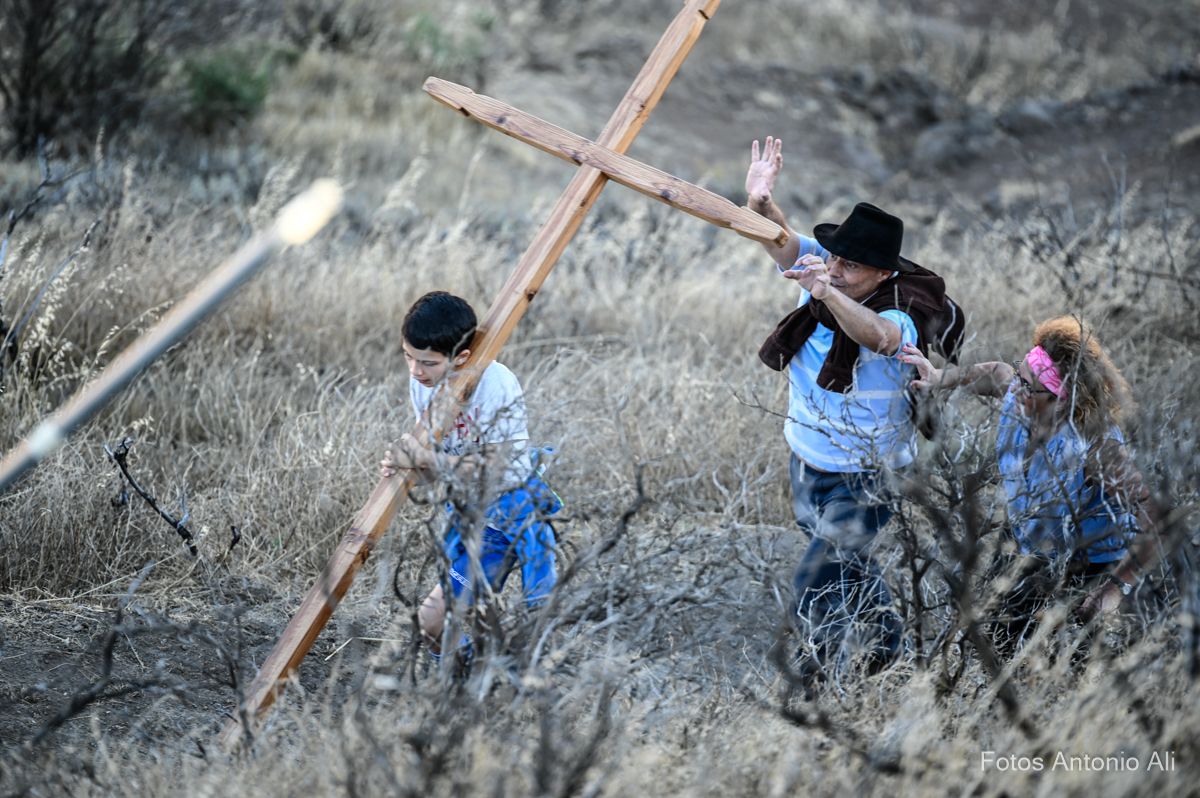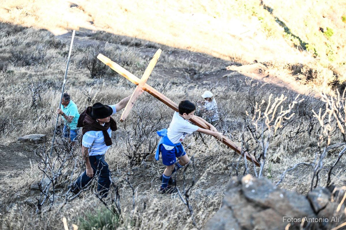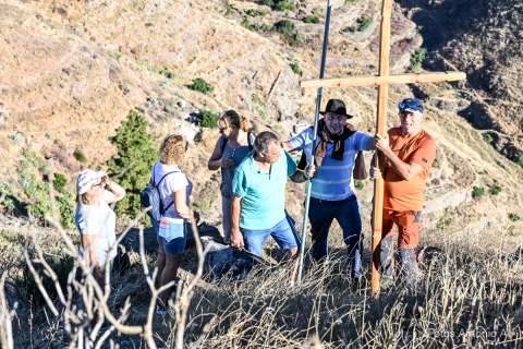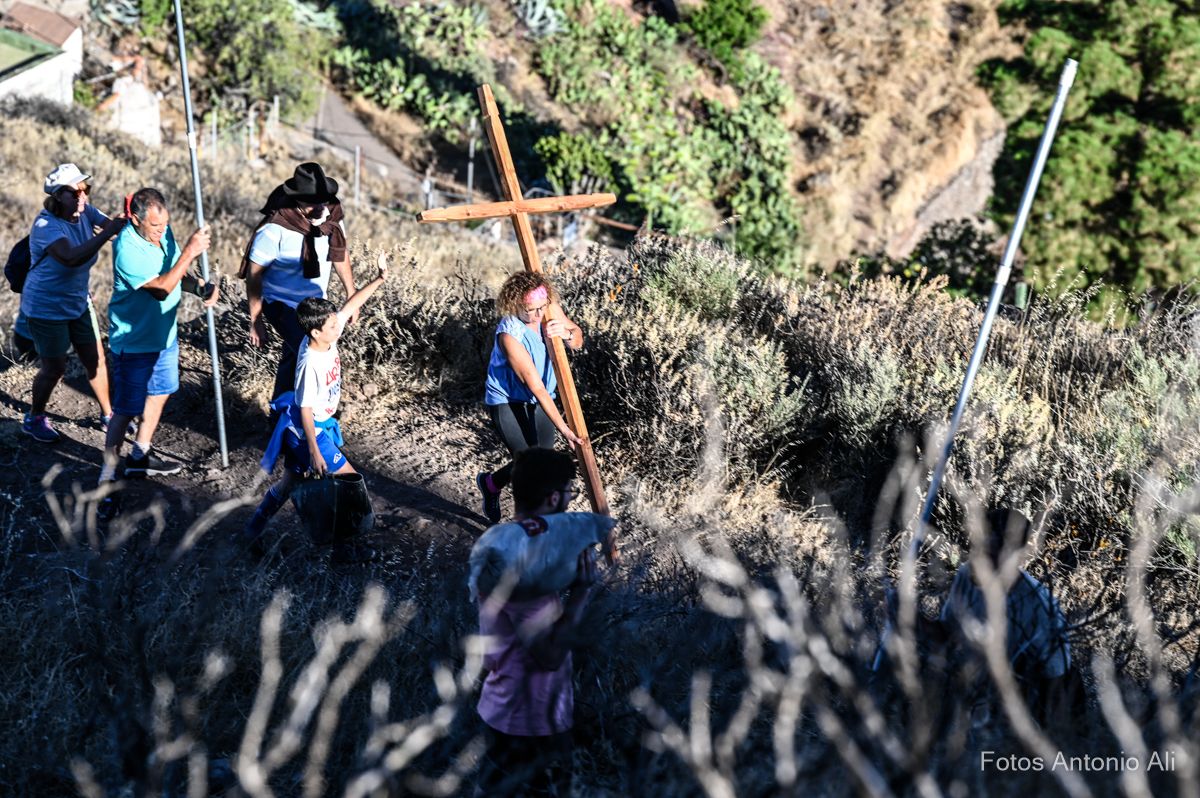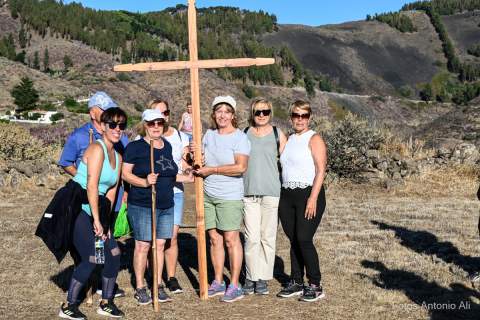 El pueblo de Juncalillo (Gáldar) volvió el pasado sábado a reponer la Cruz de Valerón que hace poco fue dañada por unos vándalos que la dejaron tirada en la explanada junto con los jarrones que la acompañaba.