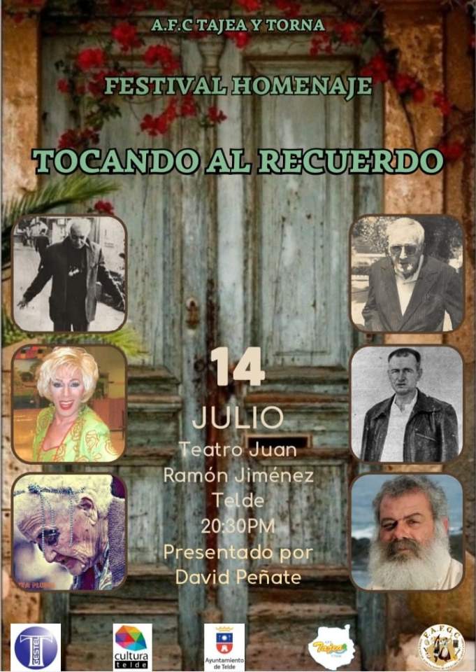 El Teatro Municipal Juan Ramón Jiménez abrirá sus puertas este viernes 14 de julio para estrenar el festival Tocando al recuerdo, un homenaje folclórico a personajes populares canarios protagonizado por el grupo teldense Tajea y Torna. Se trata de un repertorio musical creado por la rondalla, cuyas letras hacen memoria a la trayectoria y vida de seis isleños queridos y reconocidos en el Archipiélago, entre ellos el teldense Juan García Suárez, más conocido como El Corredera.