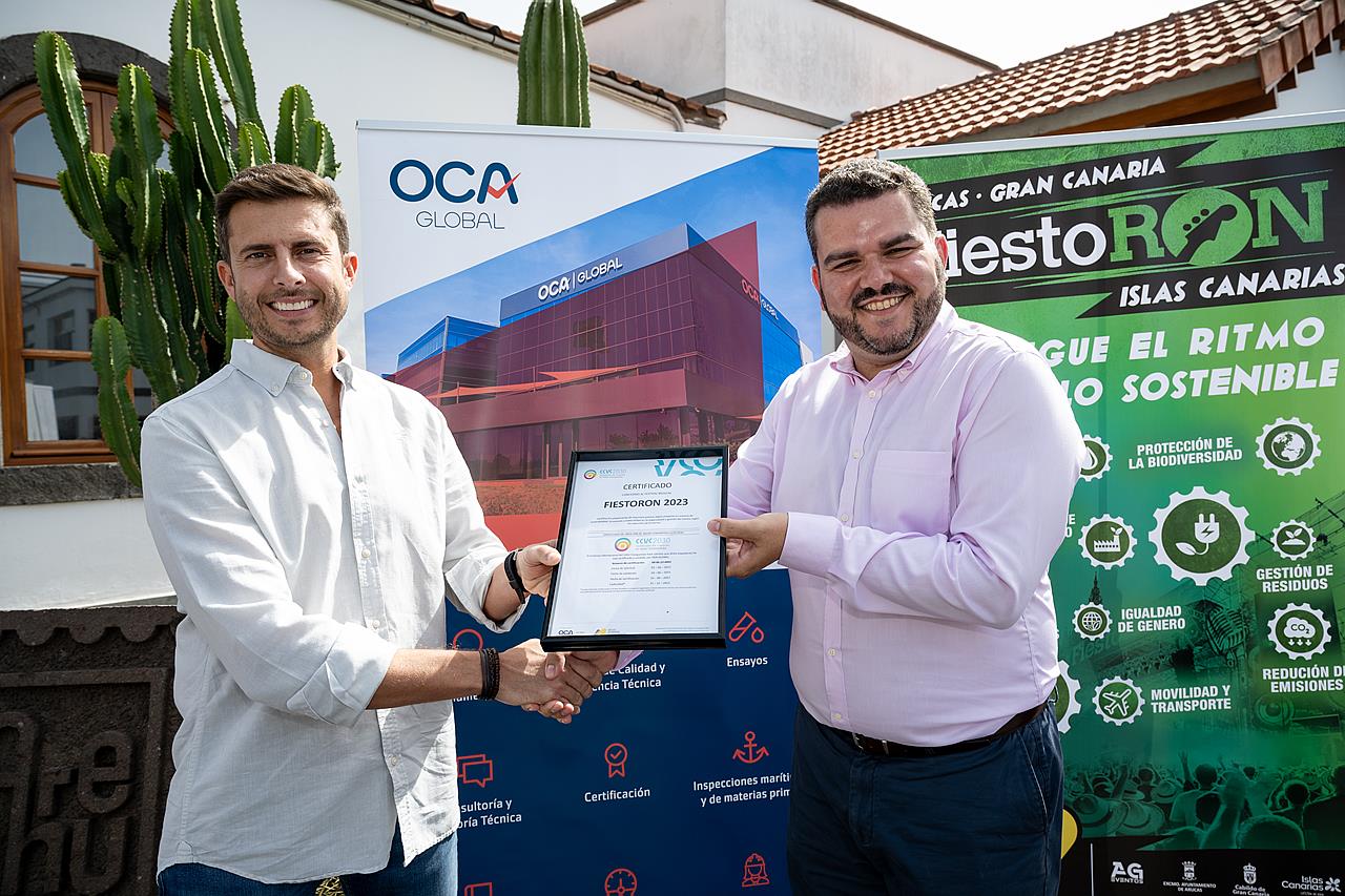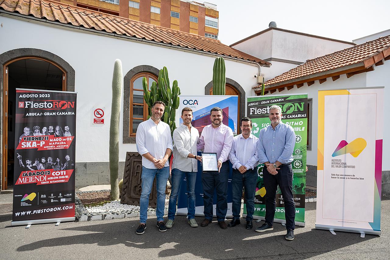 Cesar Déniz, responsable de comunicación del festival, agradeció al Instituto Internacional del Valor Compartido y a OCA Global “el reconocimiento al esfuerzo y el compromiso con la sostenibilidad, y revalidar hoy la apuesta por la excelencia y por seguir innovando y apostando por nuevas fórmulas de hacer del Fiestoron un festival sostenible, amable y responsable con el entorno social, económico y medioambiental de Arucas y de Gran Canaria”.