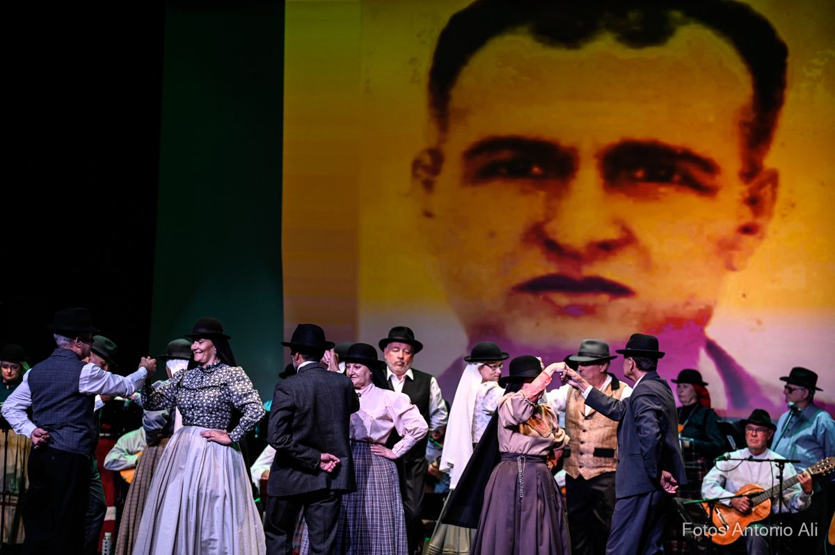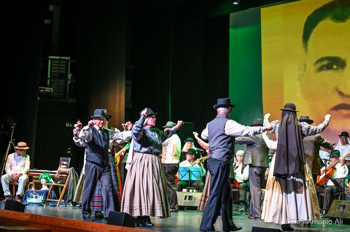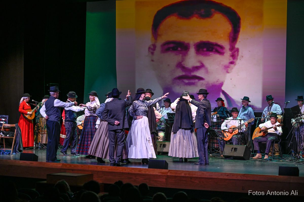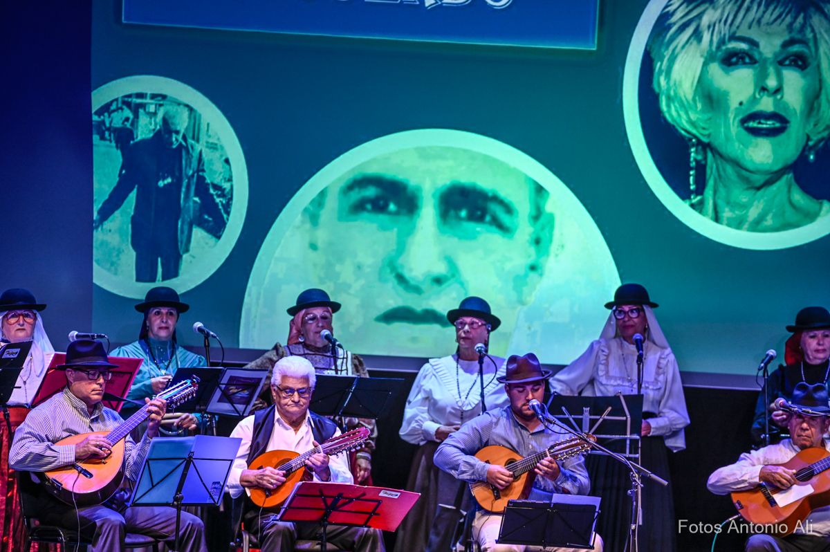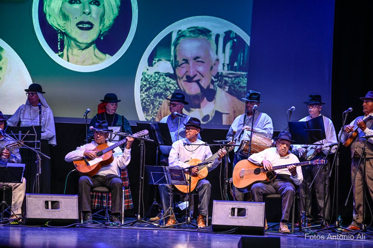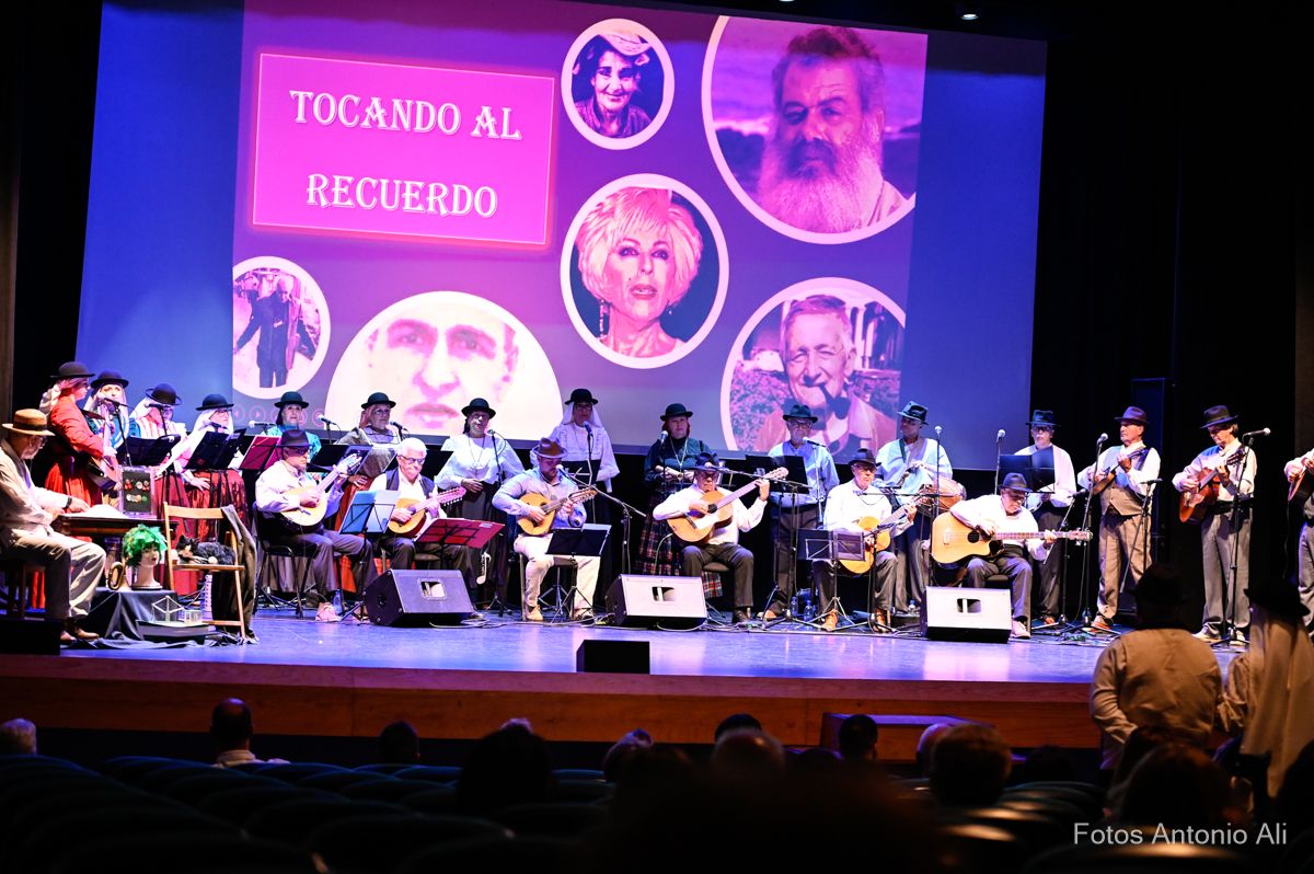 El Teatro de Telde acogió este viernes el estreno del festival Tocando al recuerdo, un homenaje folclórico a personajes populares canarios protagonizado por el grupo teldense Tajea y Torna, que ofreció un repertorio musical creado por la rondalla, cuyas letras hacen memoria a la trayectoria y vida de seis isleños queridos y reconocidos en el Archipiélago, entre ellos el teldense Juan García Suárez, más conocido como El Corredera.