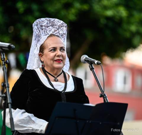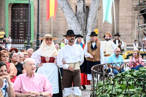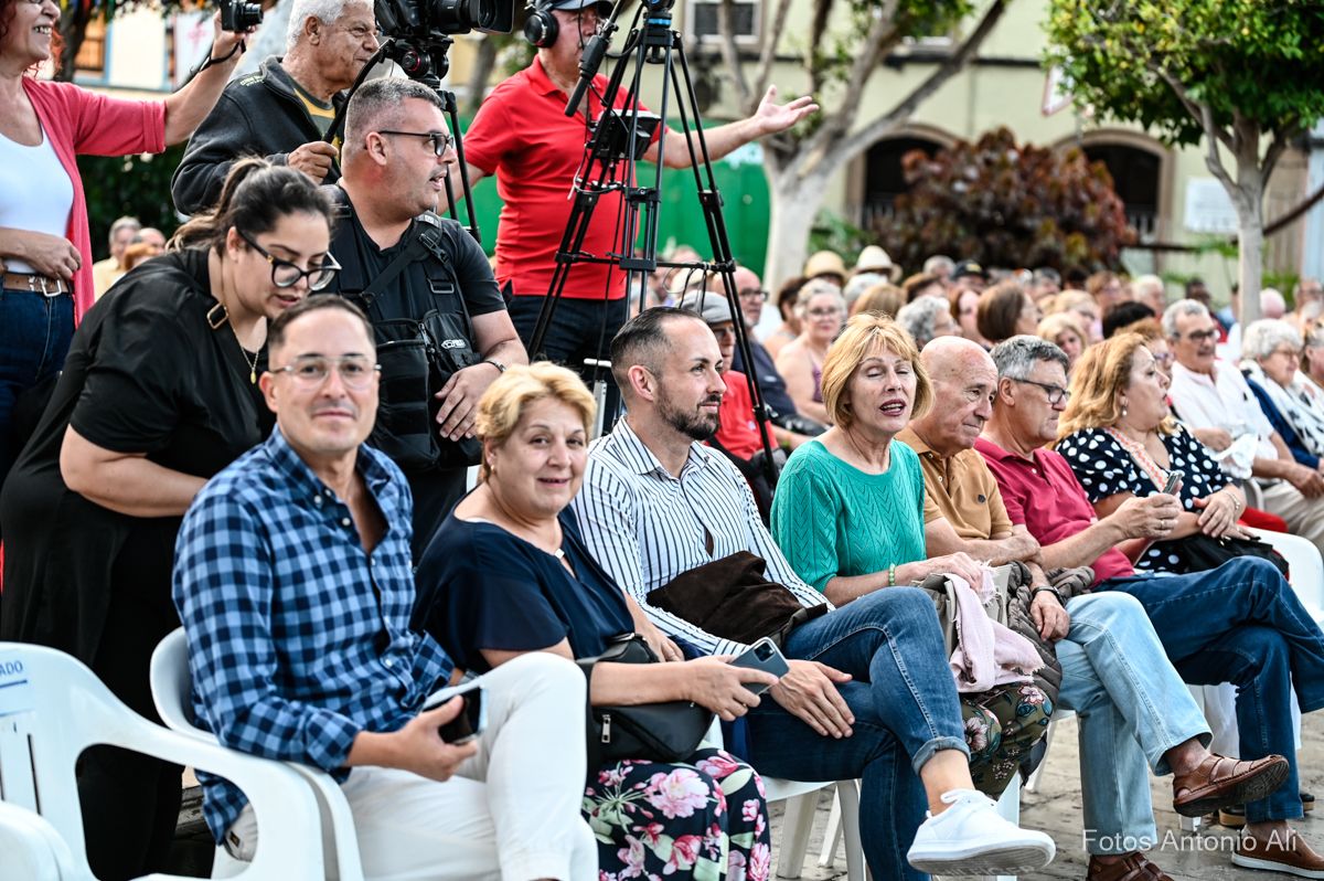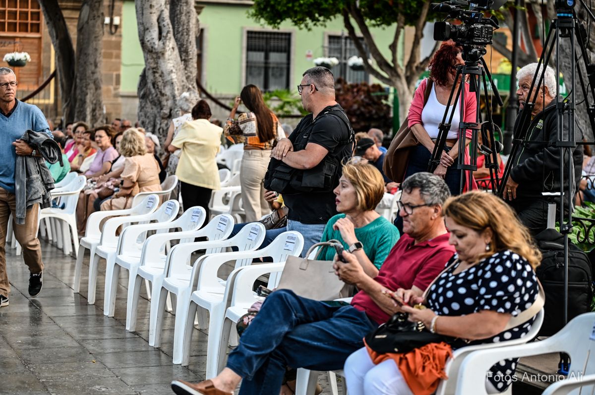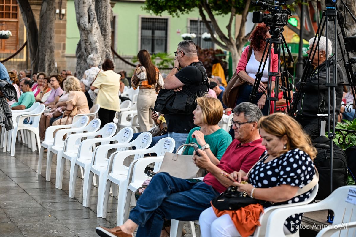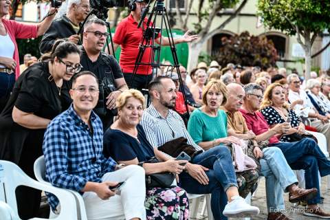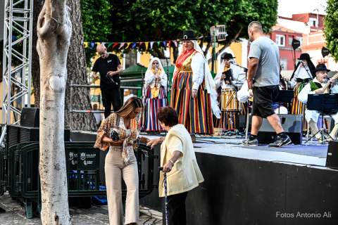 Al finalizar el concierto la agrupación galdense, como ya es habitual durante las Fiestas Mayores de Santiago, le brindó un homenaje a algunos de sus componentes, en este caso a los hermanos Boro y Pepe García y a su presidenta, Carmen Moreno.