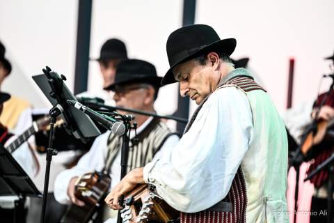 La noche arrancó con una obertura elaborada por el conductor del acto, Juan Antonio González, que hizo una interpretación particular del romance La flor del Orobal, que dio pie a que se iniciara el primer tema de estreno de Surco y Arado, La mazurca del zapatazo, recopilada por el Proyecto Comunitario de La Aldea.