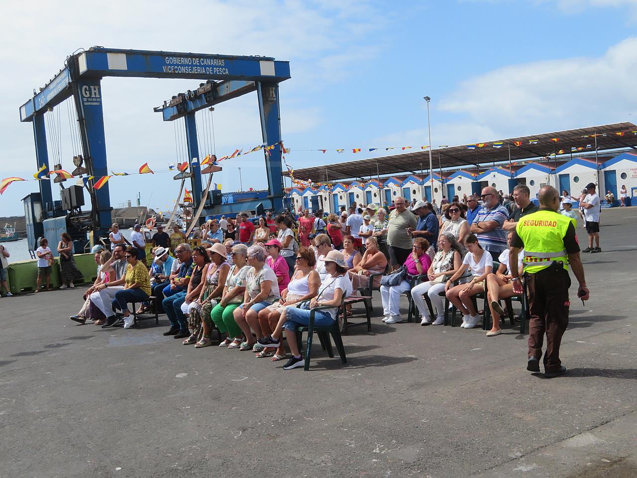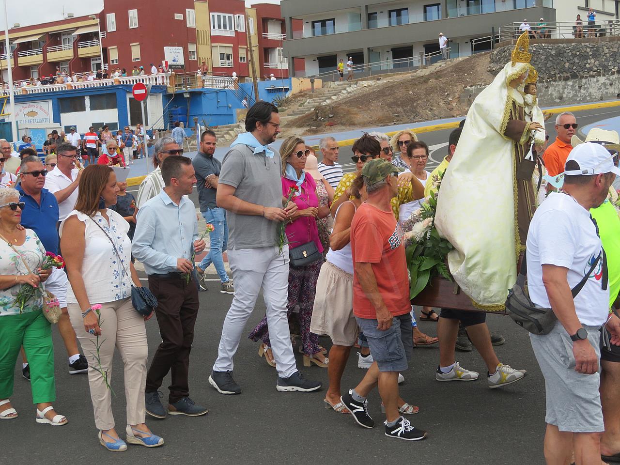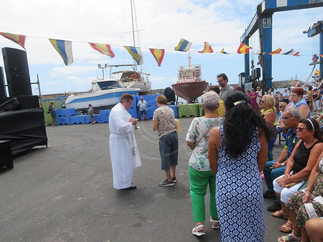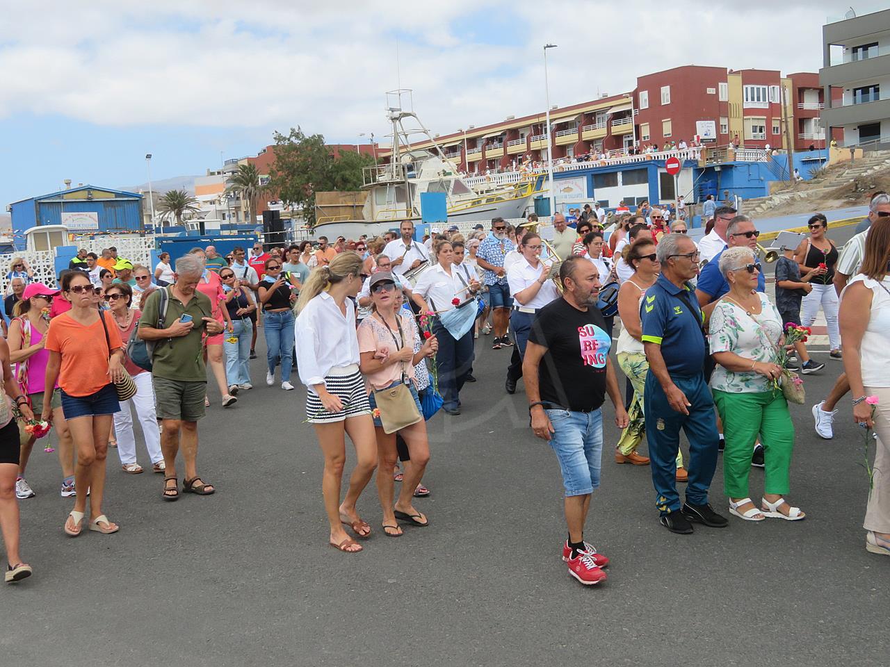 Tras la eucaristía, el  pequeño trono con la patrona fue llevado en procesión por el muelle en un recorrido algo más corto del habitual amenizada por la banda de cornetas y tambores Asanpa de La Isleta (Las Palmas de Gran Canaria).