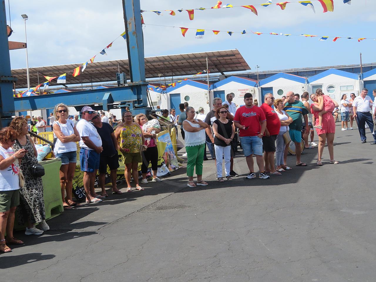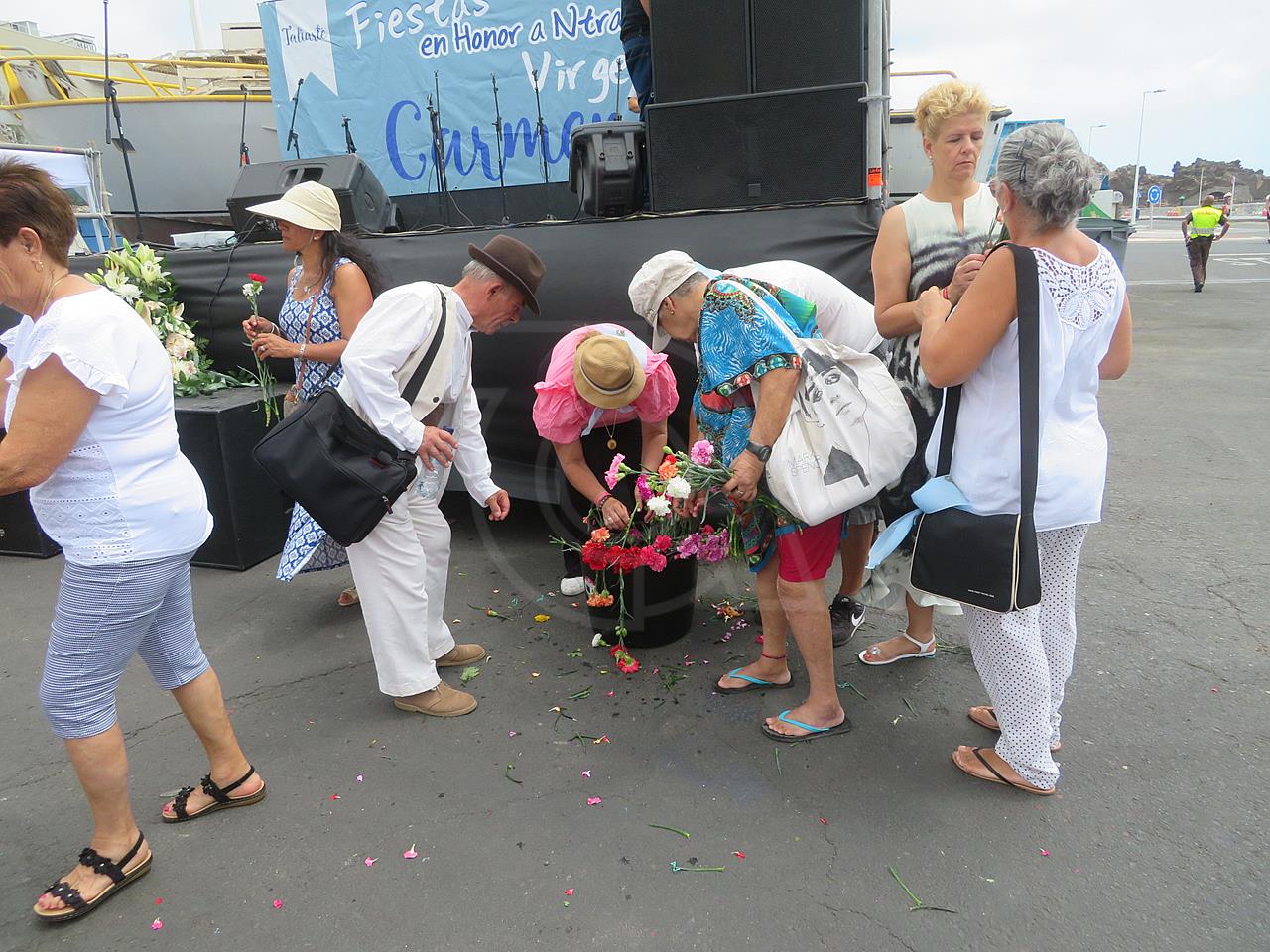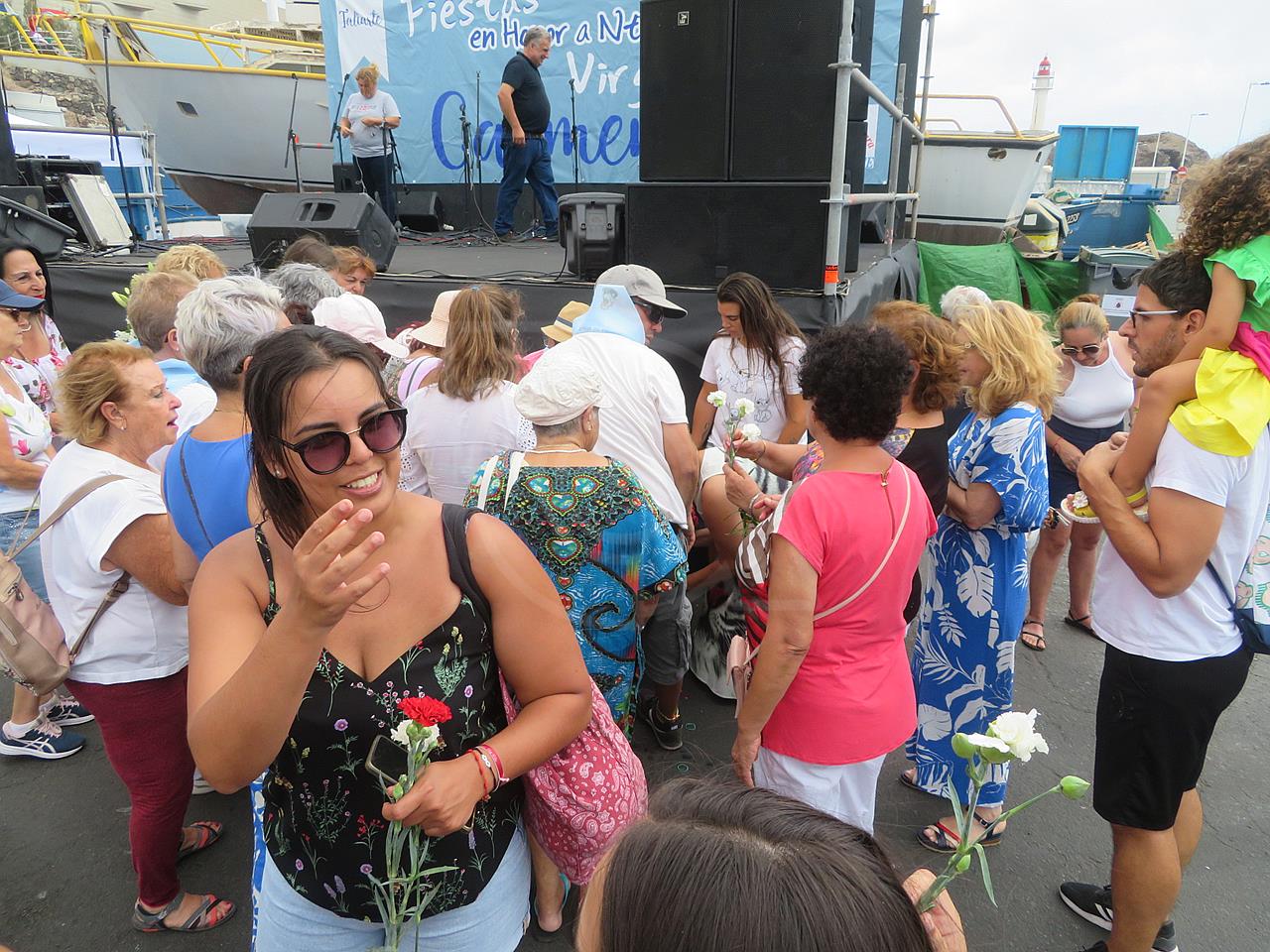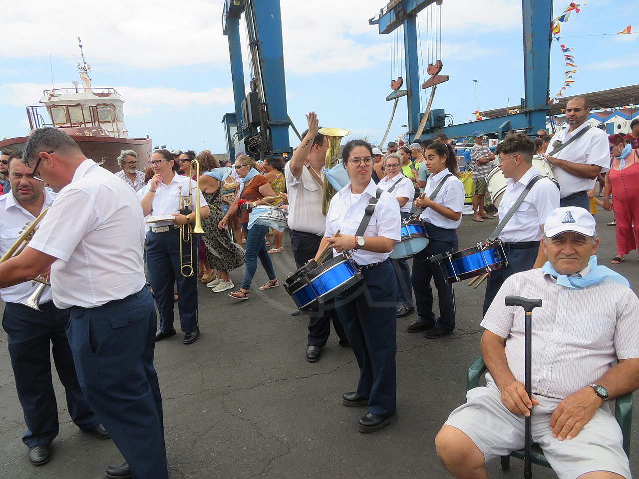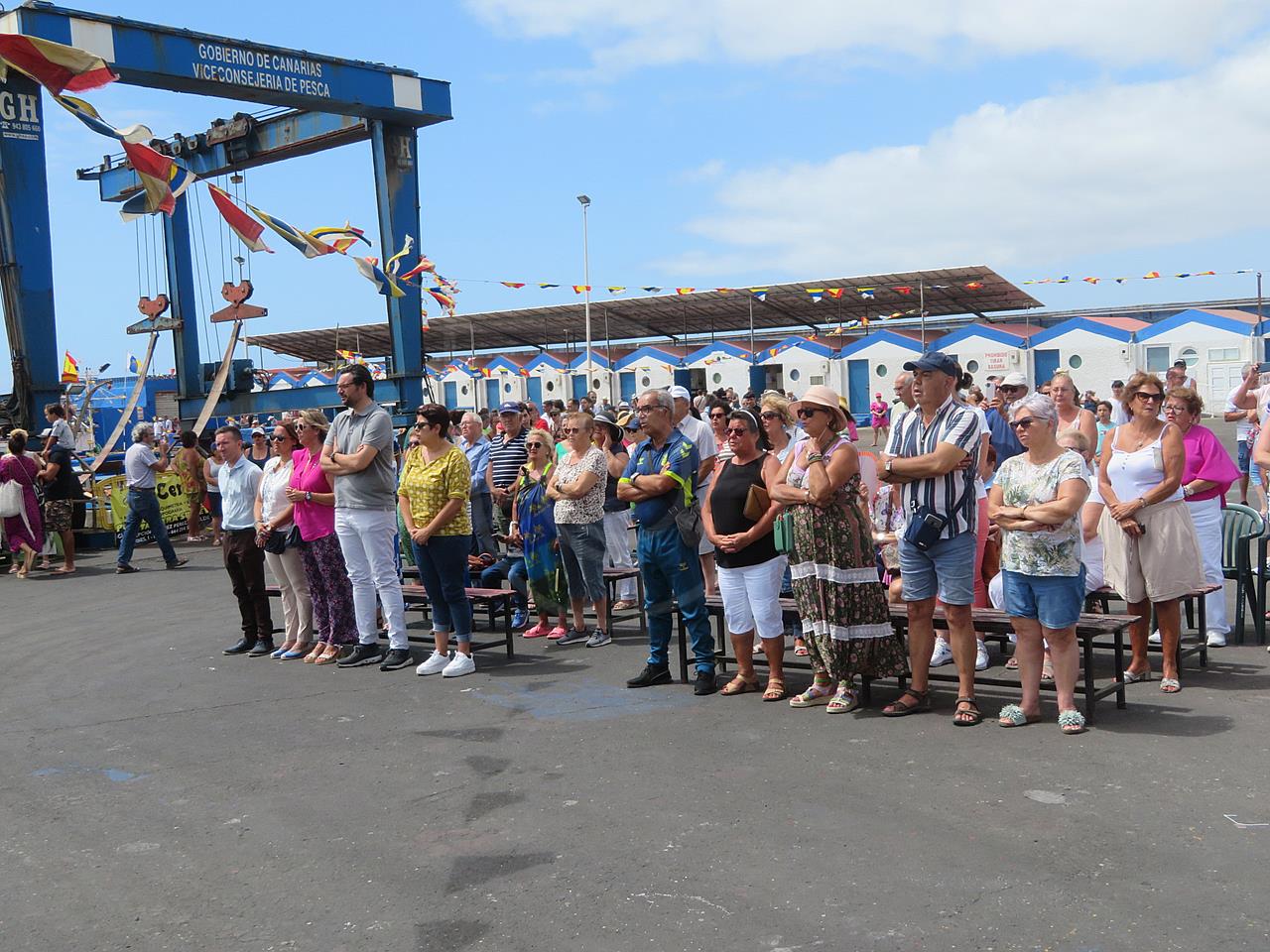 Tras la eucaristía, el  pequeño trono con la patrona fue llevado en procesión por el muelle en un recorrido algo más corto del habitual amenizada por la banda de cornetas y tambores Asanpa de La Isleta (Las Palmas de Gran Canaria).