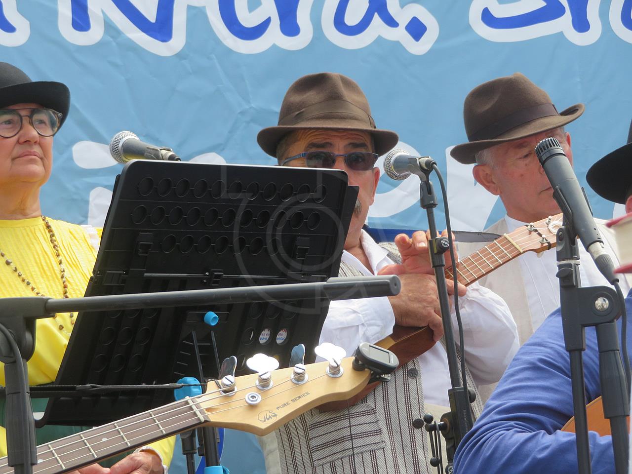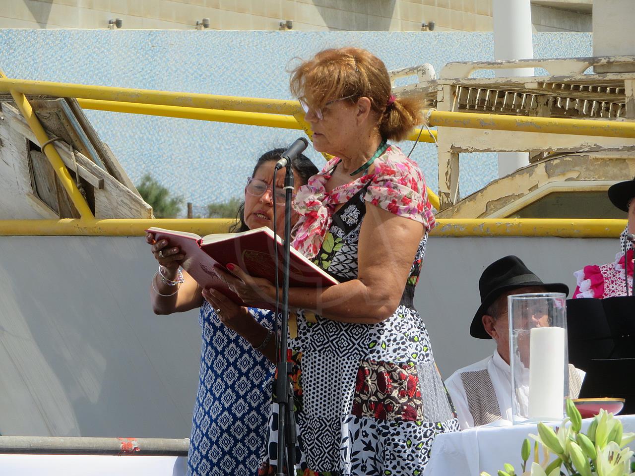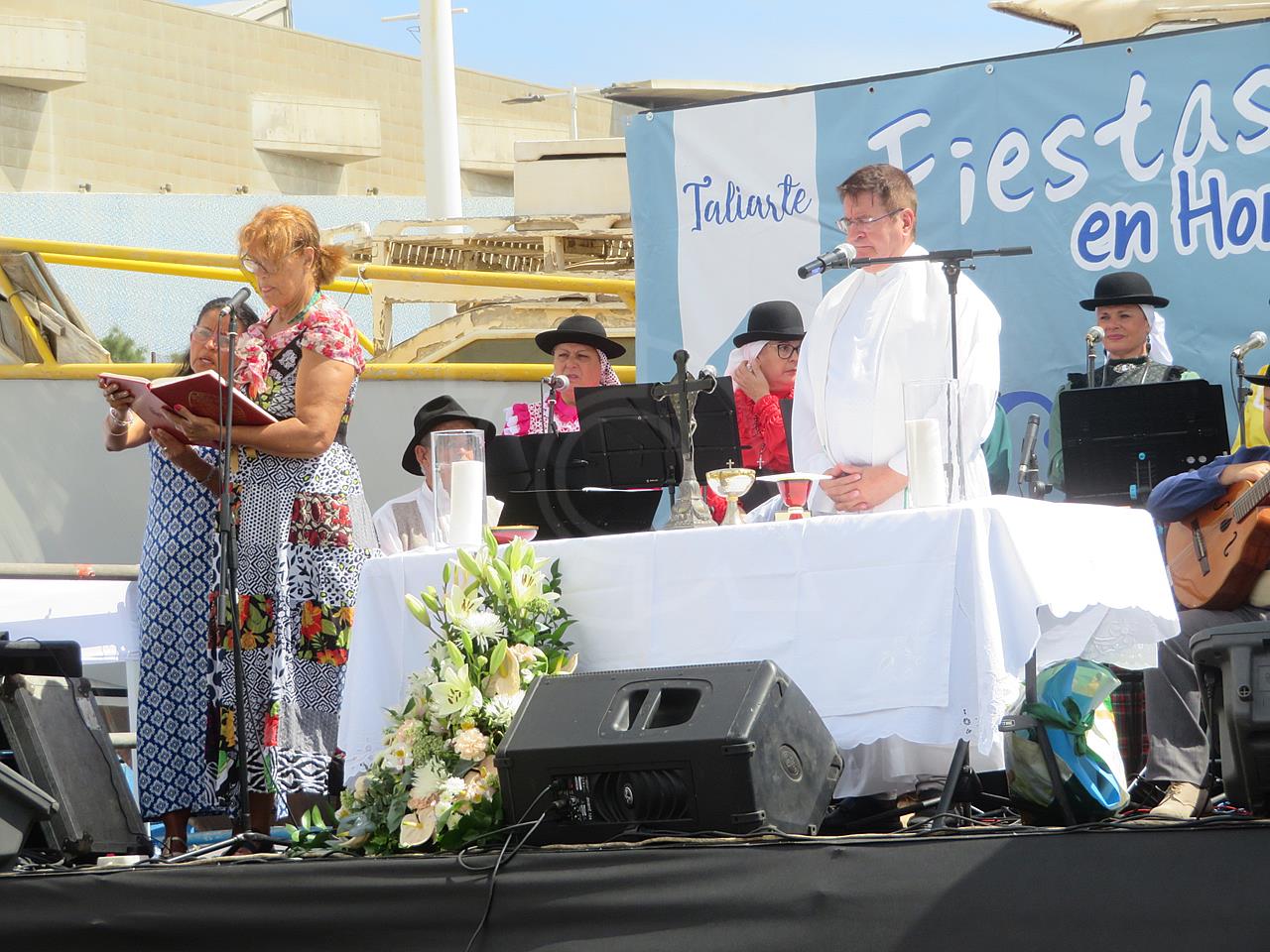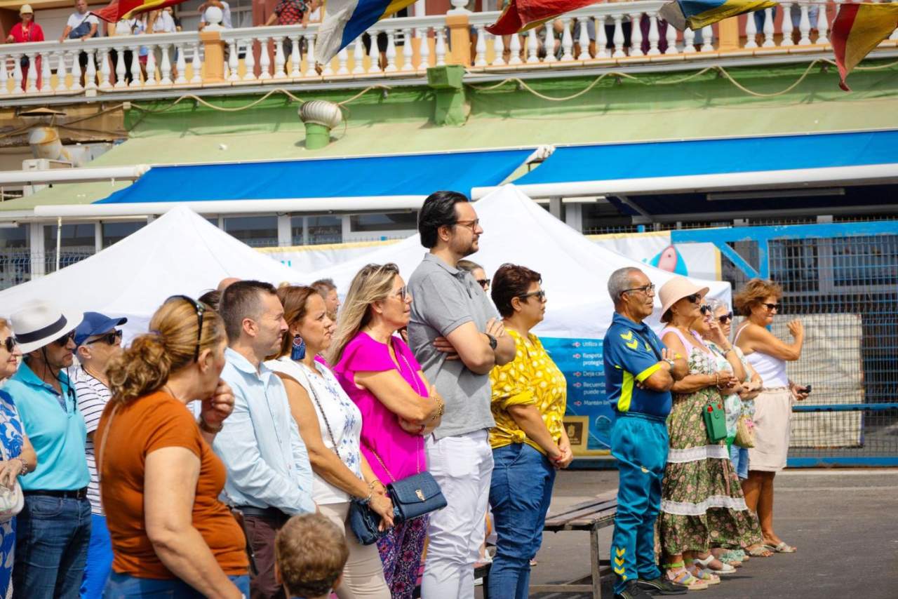 Decenas de personas asistieron a la misa previa, oficiada en la explanada del muelle pesquero y deportivo por el párroco Francisco Javier Martínez con el acompañamiento musical de la parranda Las Goteras.