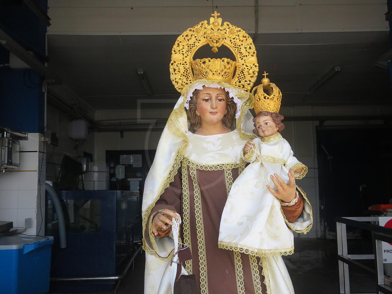 A bordo de esta embarcarción, la Virgen del Carmen surcó la bahía de Taliarte y Melenara hasta llegar a Salinetas para luego dar la vuelta y regresar al muelle. En todo momento en medio del habitual jolgorio y arropada por muchas personas que siguieron la estela de la patrona de los marinos desde otras embarcaciones.