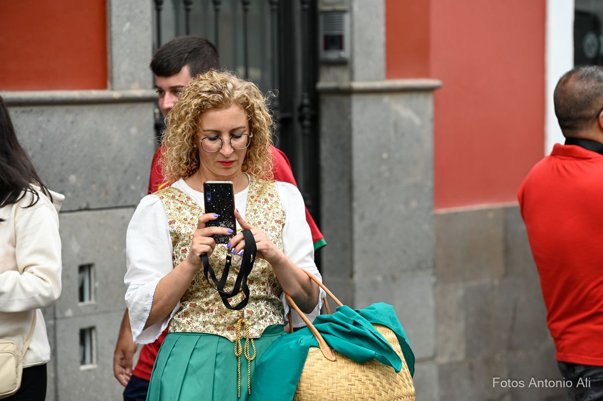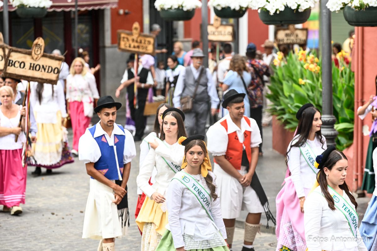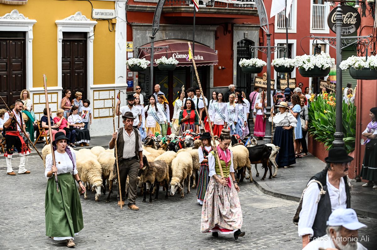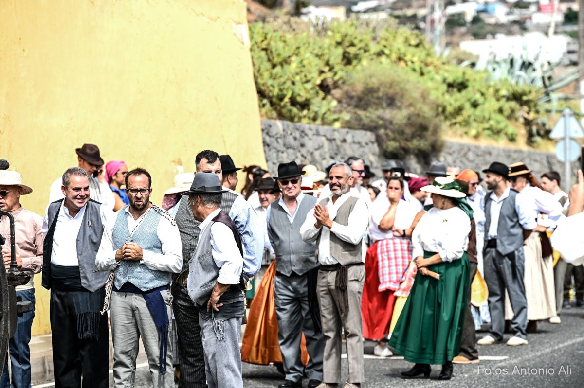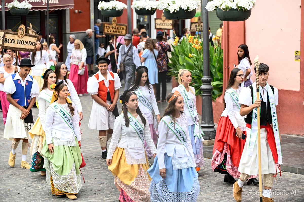 Abrió el camino en el inicio de la calle Capitán Quesada la Agrupación Folclórica Joapira, de El Hierro, de más de treinta años de historia, delante de ganado ovino anunciando que comenzaba la Romería Ofrenda en honor a Santiago. Posteriormente aparecieron la Guayarmina 2023, Paula Díaz Hidalgo y el Bentejuí, Ricardo Díaz Tacoronte, así como la Corte de Tenesoyas y representantes de los barrios y pagos del municipio.
