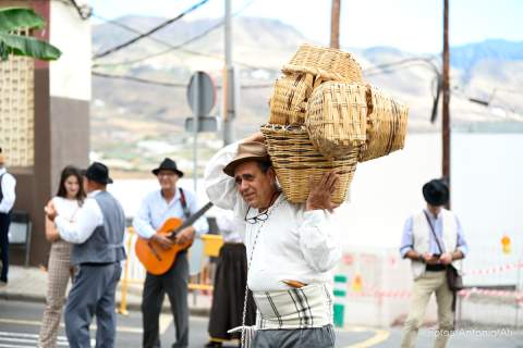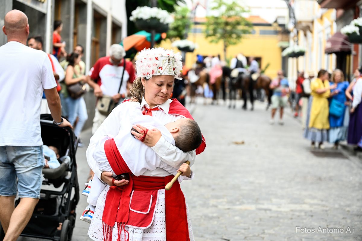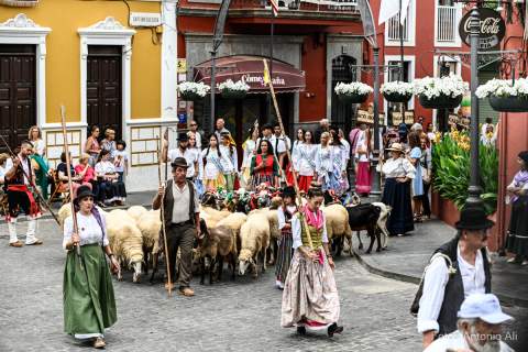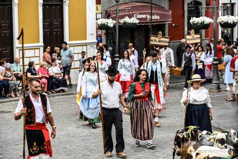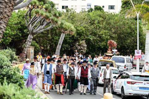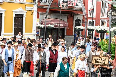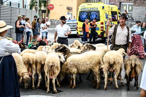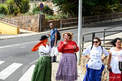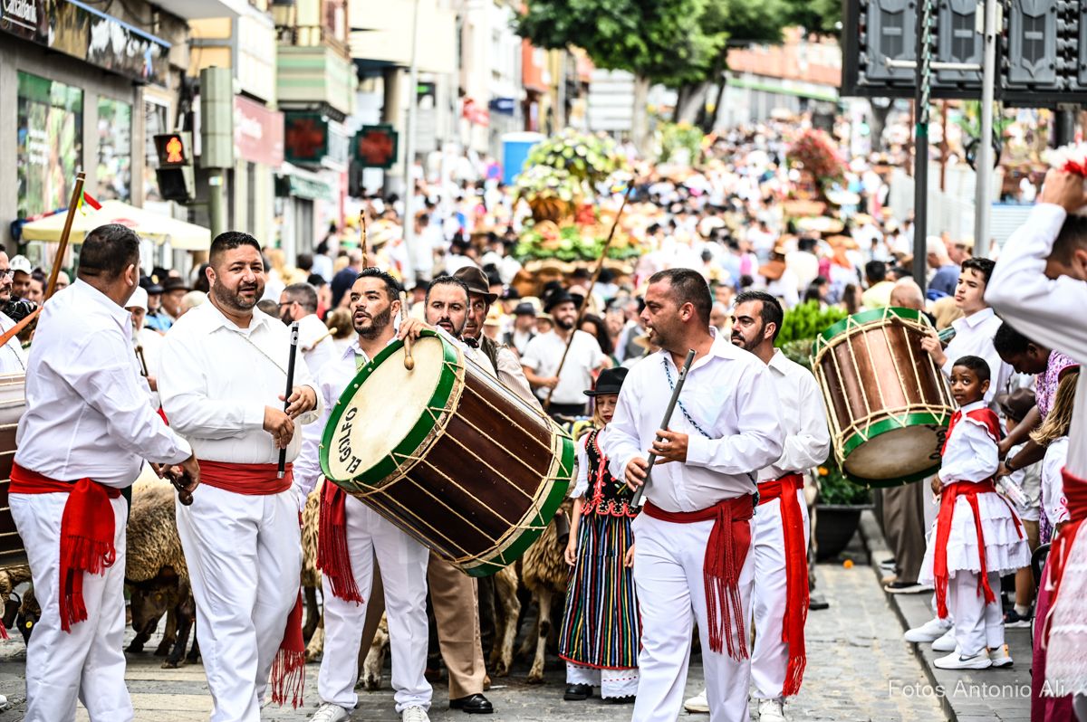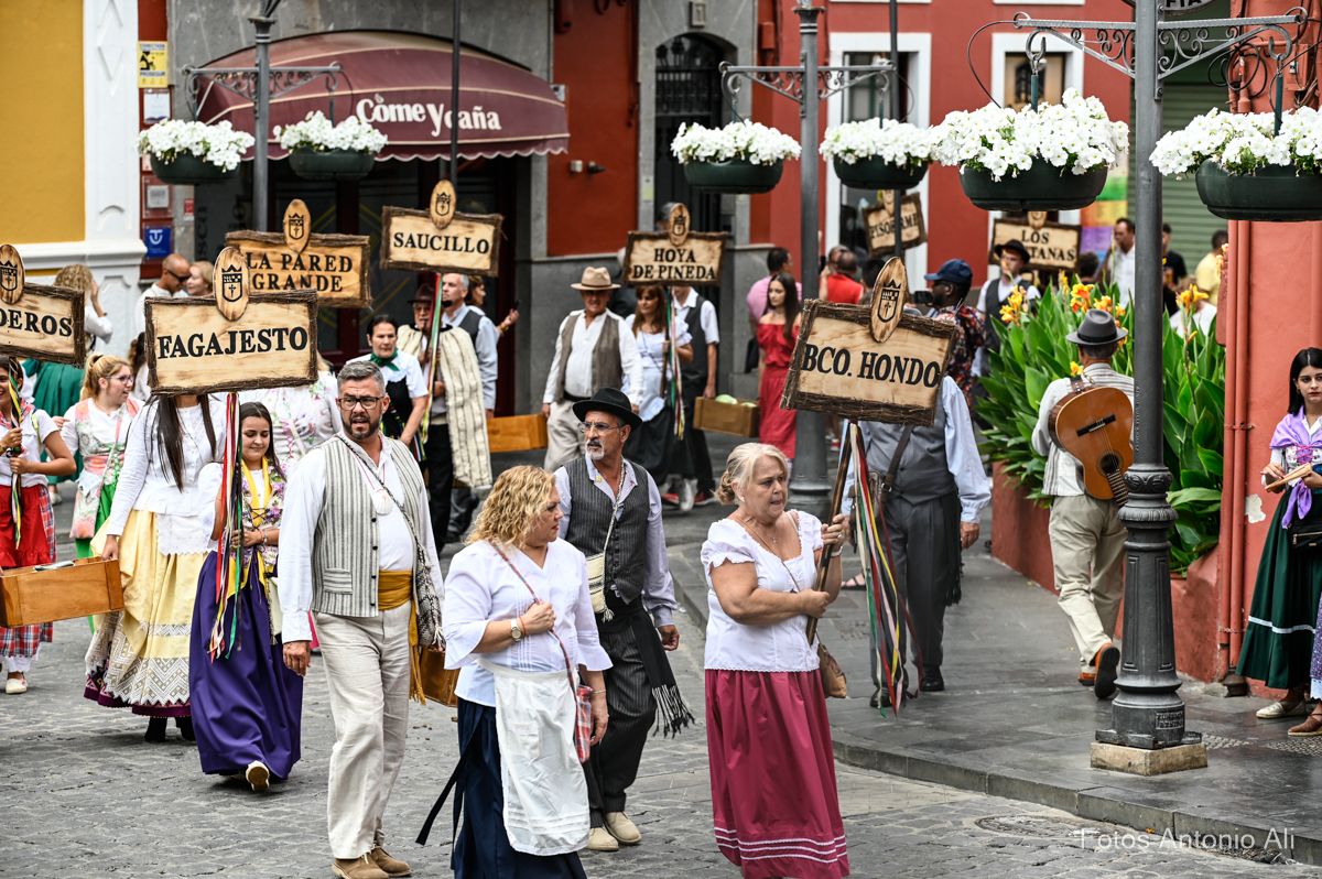 Abrió el camino en el inicio de la calle Capitán Quesada la Agrupación Folclórica Joapira, de El Hierro, de más de treinta años de historia, delante de ganado ovino anunciando que comenzaba la Romería Ofrenda en honor a Santiago. Posteriormente aparecieron la Guayarmina 2023, Paula Díaz Hidalgo y el Bentejuí, Ricardo Díaz Tacoronte, así como la Corte de Tenesoyas y representantes de los barrios y pagos del municipio.