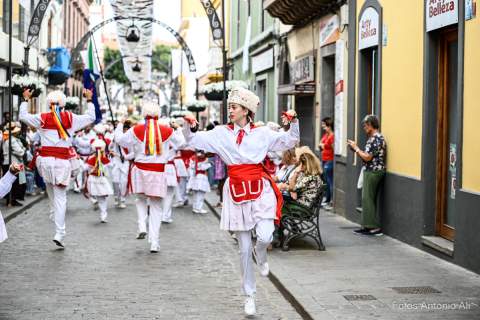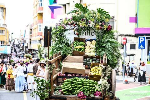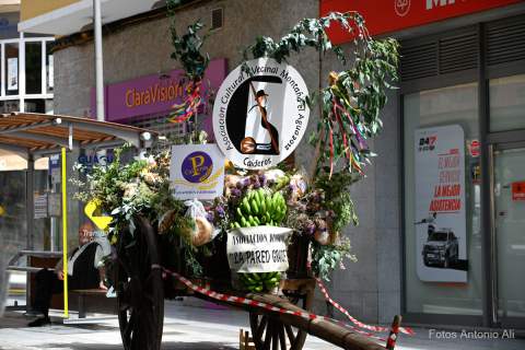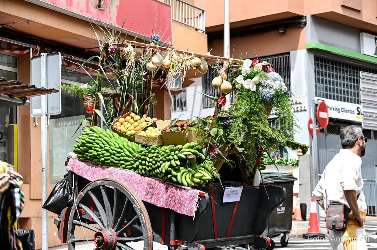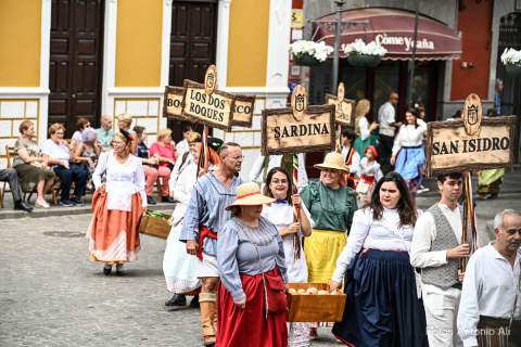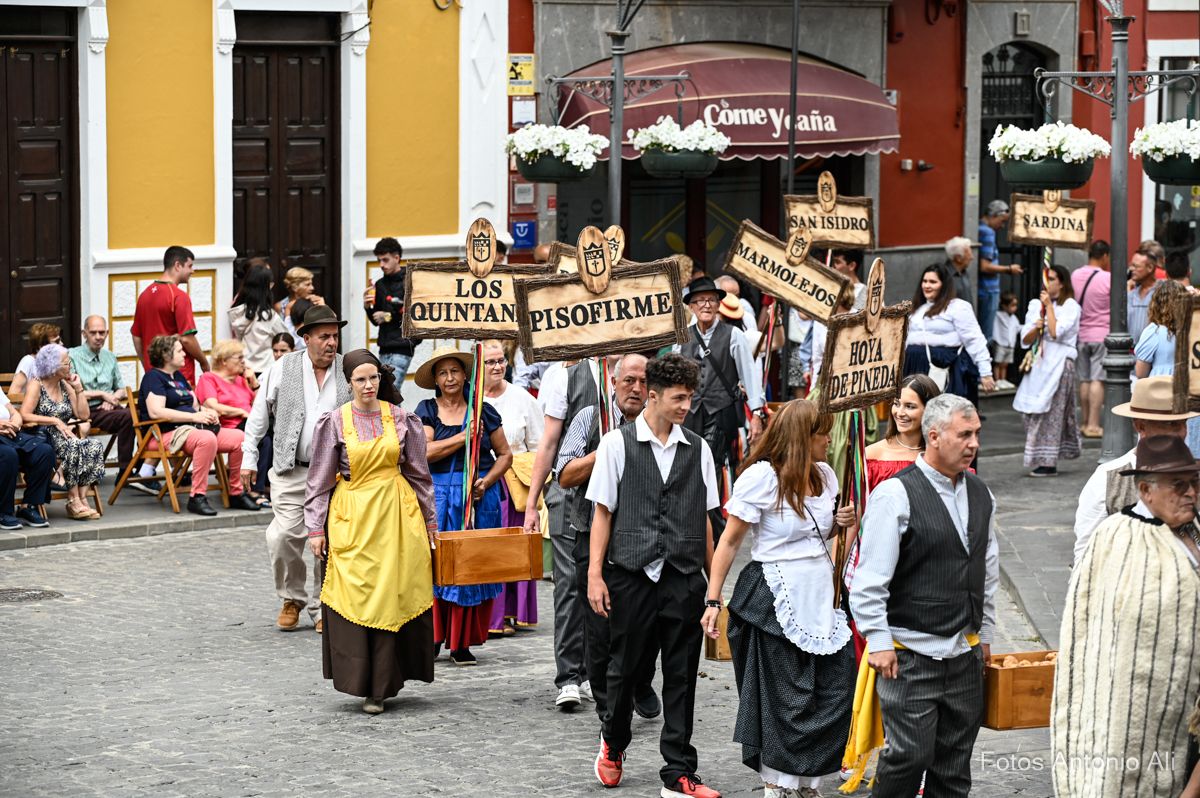 Hasta 44 carretas y una quincena de agrupaciones folclóricas tanto locales como llegadas de varios puntos del Archipiélago desfilaron ante la imagen de Santiago, a quien ofrendaron con productos de la tierra y alimentos no perecederos.