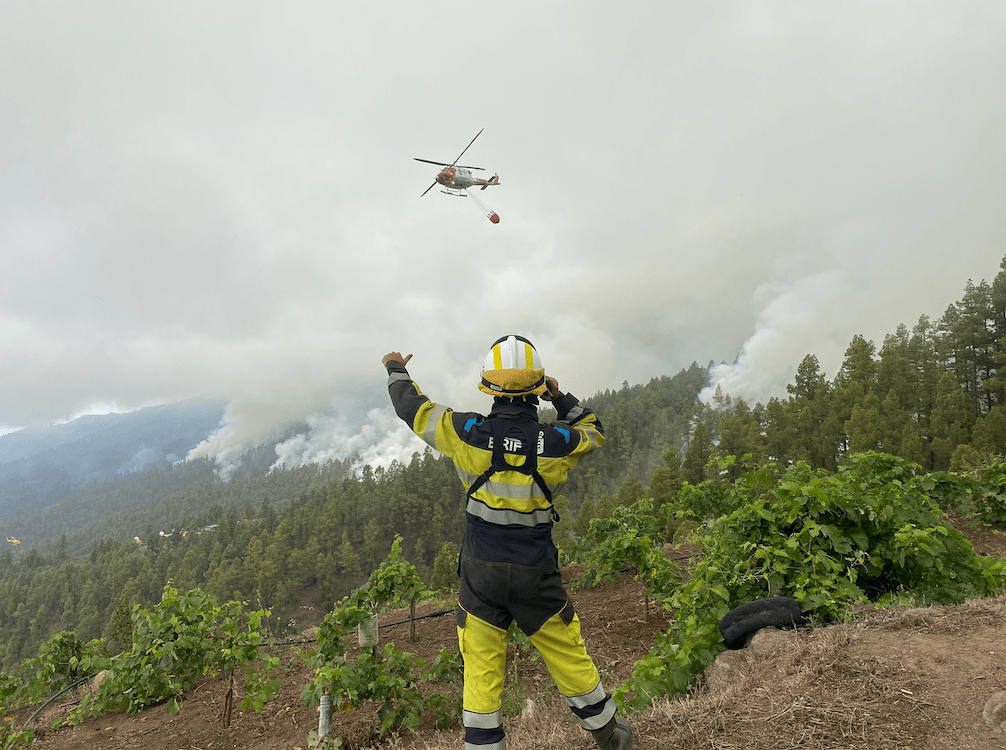 Según el presidente del Cabildo de La Palma, Sergio Rodríguez, este lunes es clave para acotar el desarrollo del incendio, porque se prevé que a partir del martes regrese el calor y las condiciones meteorológicas de temperatura y humedad se reviertan.