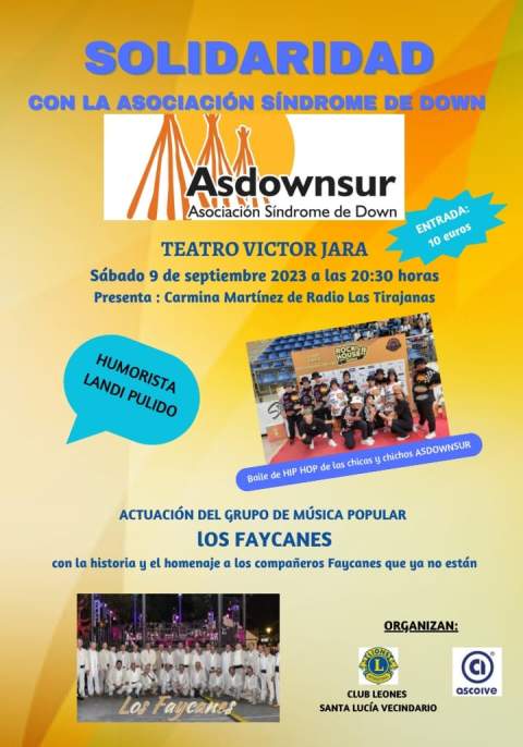 Este evento está organizado por el Club de Leones de Santa Lucía y Ascoive, y la entrada solidaria para poder disfrutar de estos espectáculos tiene un coste de 10 euros. Se puede adquirir en el Ateneo Municipal o a través de entrées.es.