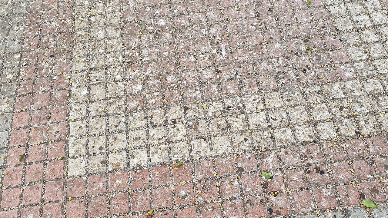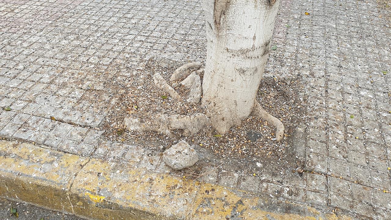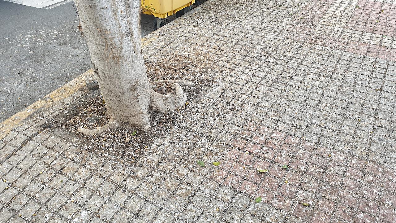 La suciedad originada por los excrementos de tórtolas y palomas ha ido a peor en la rambla central de la calle de Américo Vespucio, en Salinetas.