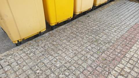 Hasta hace un mes aproximadamente, la acera y recipientes para la recogida selectiva de envases de plástico eran lavados cada semana.