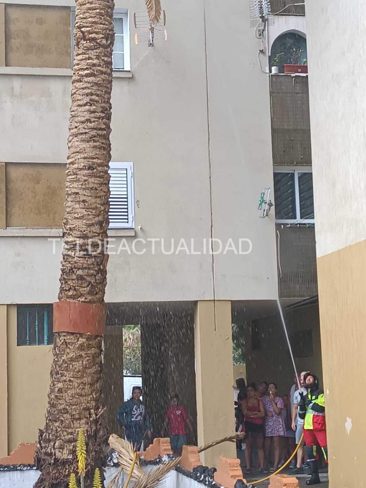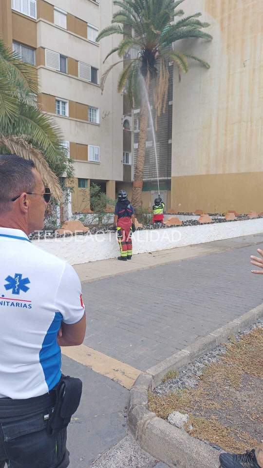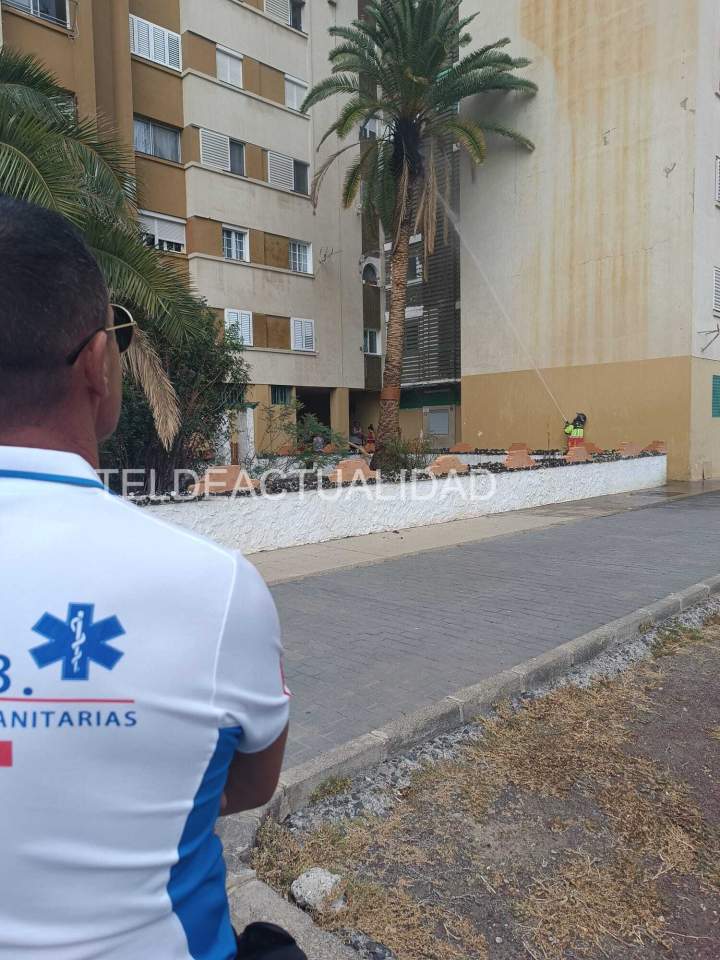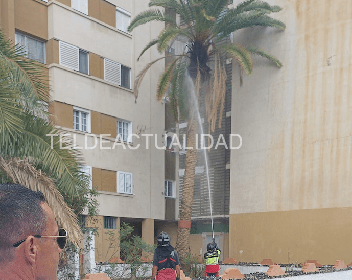 Los servicios de emergencia tuvieron que actuar este miércoles para sofocar un pequeño incendio que se declaró en la copa de una palmera muy próxima a un edificio de viviendas del Valle de Jinámar.