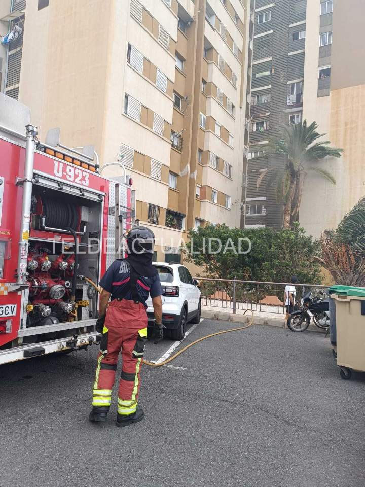 El fuego se declaró sobre las 16.38 horas, junto al bloque 11 de la I Fase. Y hasta el lugar se desplazó una dotación de bomberos de Las Palmas de Gran Canaria y personal de Salva-Emer Emergencias.