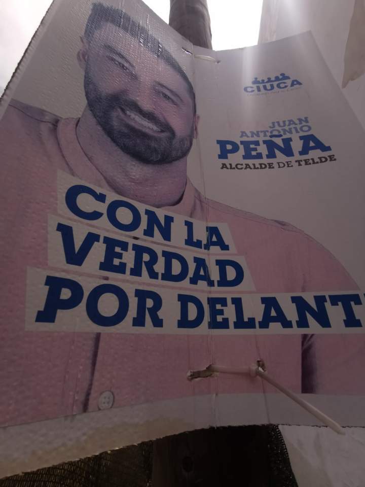 Otro lector ha remtido a TELDEACTUALIDAD un cartel electoral del "señor alcalde" que aún cuelga también en una calle de El Calero de Telde desde las pasadas elecciones locales, que "tampoco ha tenido tiempo de quitarlo", señala.