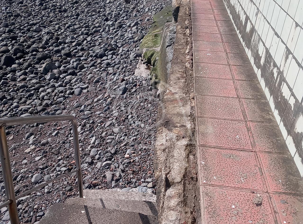 Informan los residentes de que hace unos meses la marea derribó el muro que daba seguridad a una estrecha avenida que da a la playa. Desde entonces no se ha arreglado “con el consiguiente peligro que supone para los usuarios de la playa”.