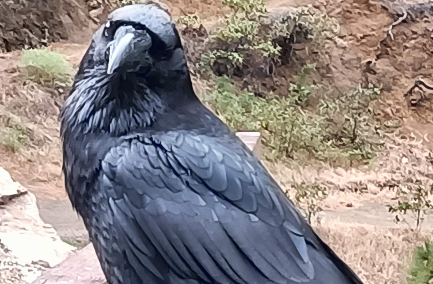 Desde la costa hasta la cumbre, cumbres alomadas que en la isla majorera son de escasa entidad, profundos barrancos y escalofriantes precipicios en la isla palmera, siempre me encontré con la presencia del cuervo. Me sorprendió su proximidad al ser humano en la costa de Antigua, donde es frecuente observarlo en los complejos hoteleros, descansando, curioseando, sobrevolando la costa, en busca de aquellas zonas donde los seres humanos depositan sus desperdicios alimenticios. Comportamiento similar al observado en los miradores de la caldera de Taburiente. En ambas islas, la costumbre de alimentarlos ha propiciado su proximidad al ser humano, un grado de docilidad tal, que es fácil observarlo comiendo de la mano de alguno de ellos.
