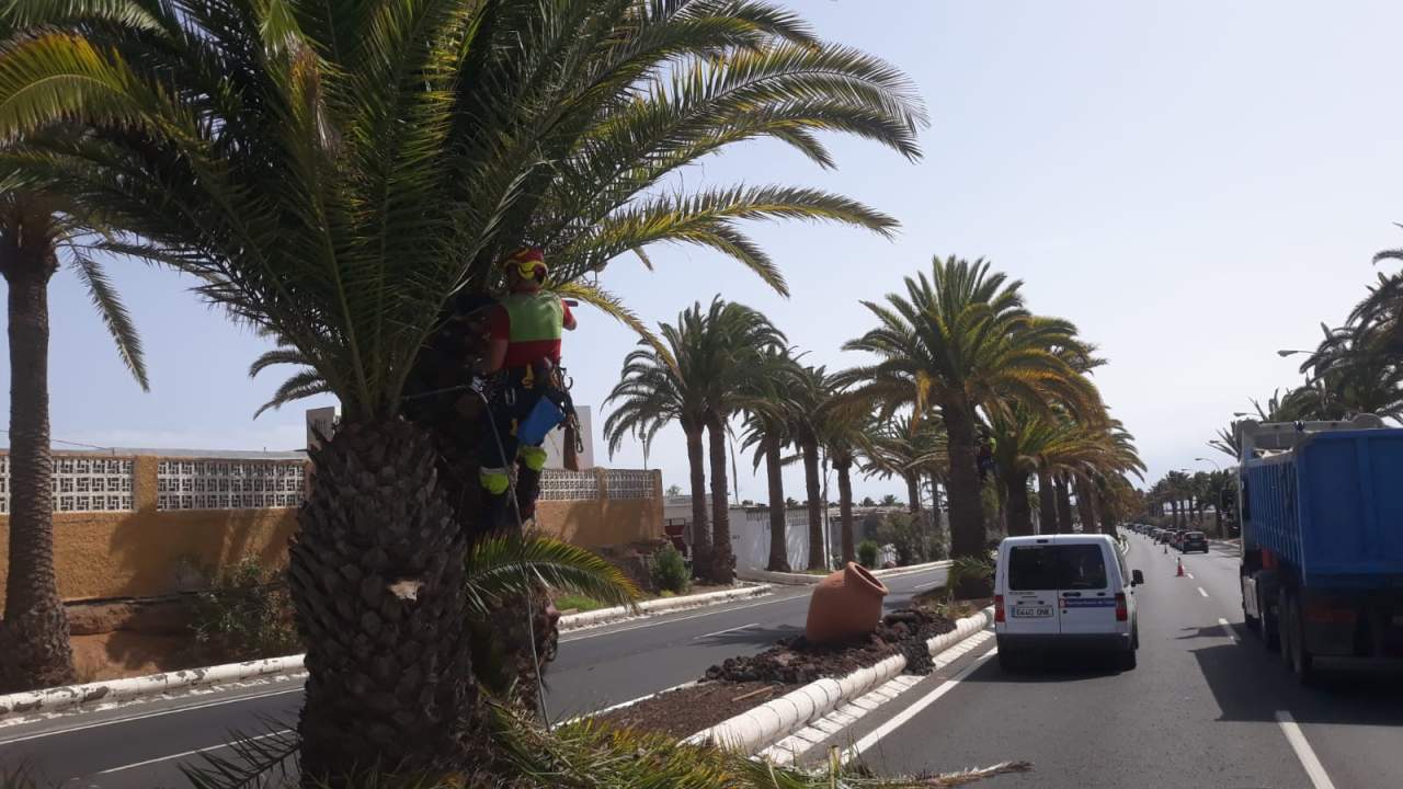 La Concejalía de Parques y Jardines, liderada por Juan Francisco Artiles, ha iniciado durante la mañana de hoy los trabajos pertinentes de poda, limpieza y mantenimiento de palmeras y zonas ajardinadas, correspondientes a la mediana central de la Avenida del Cabildo, con el fin de “poner en valor la mejora y el cuidado de la entrada principal a la ciudad”, puntualiza el edil.