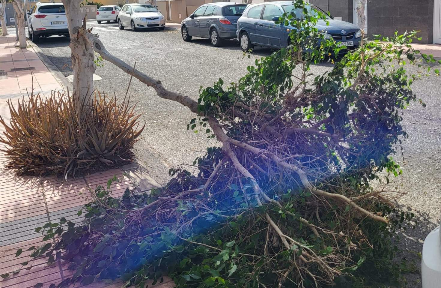 Vecinos de la urbanización residencial La Hoyeta, en La Pardilla, han alertado esta tarde de la caída de una rama de un árbol en la calle de Marianela, a la altura del número 17. Reclaman su retirada a los servicios municipales de Parques y Jardines porque invade la acera y parte de la calzada.