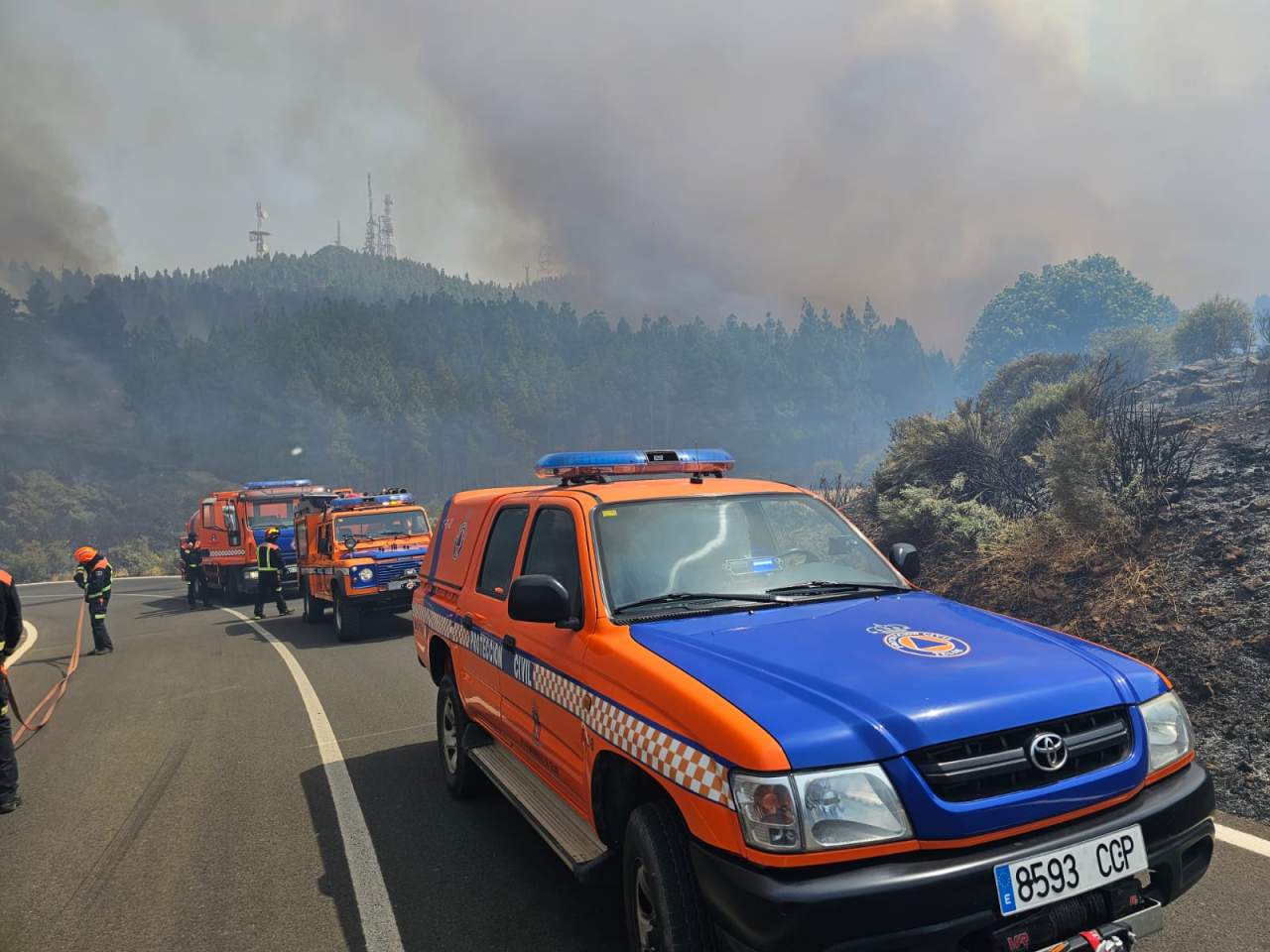 Desde tierra eran 150 los efectivos que trabajaban para evitar la propagación del incendio, entre ellos varias brigadas Bravo y Presa del Cabildo, unidades forestales llegadas desde La Palma y La Gomera, dotaciones del Consorcio de Emergencias, Protección Civil de varios municipios y distintos cuerpos policiales, pero no la Unidad Militar de Emergencias (UME) de Gando.
