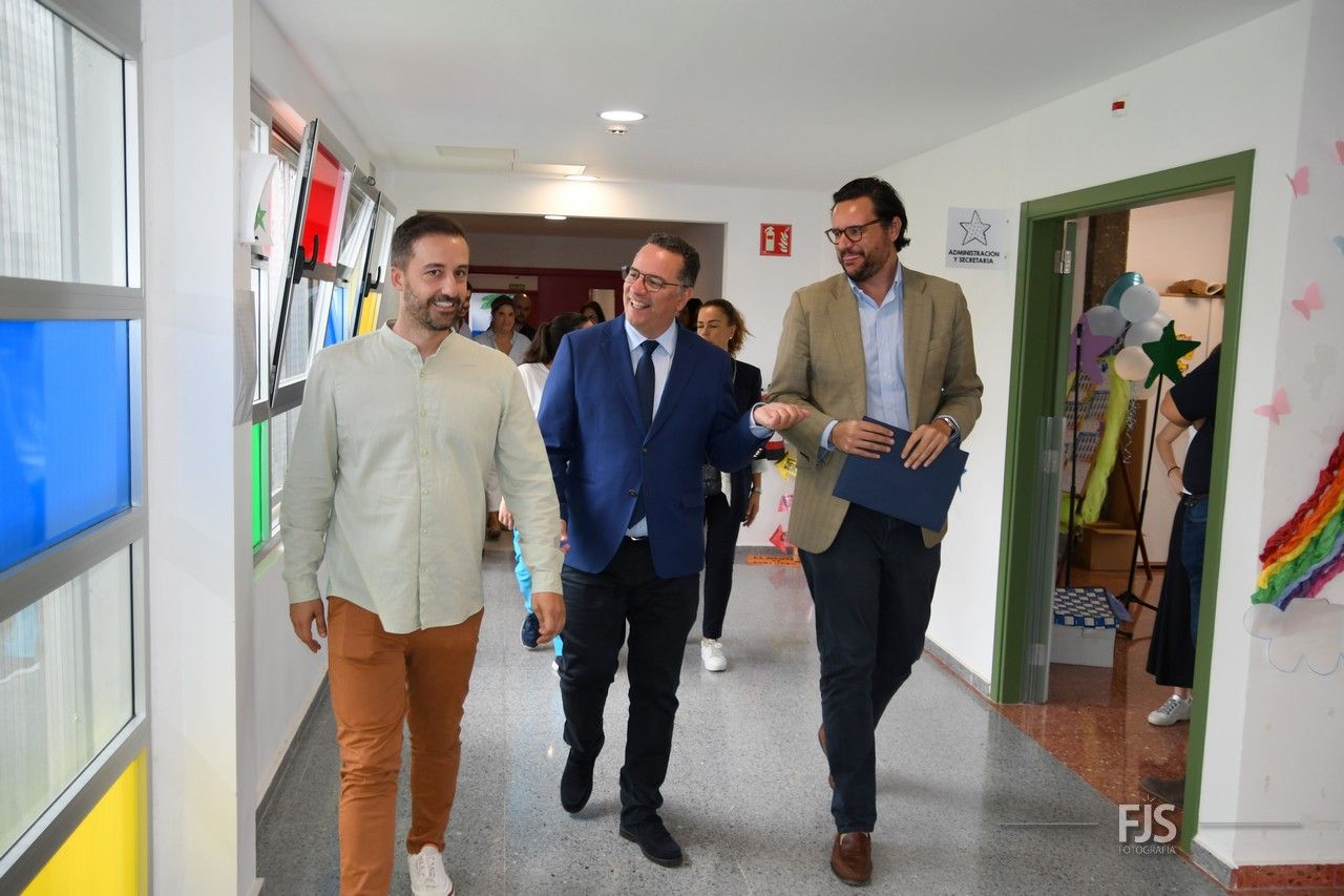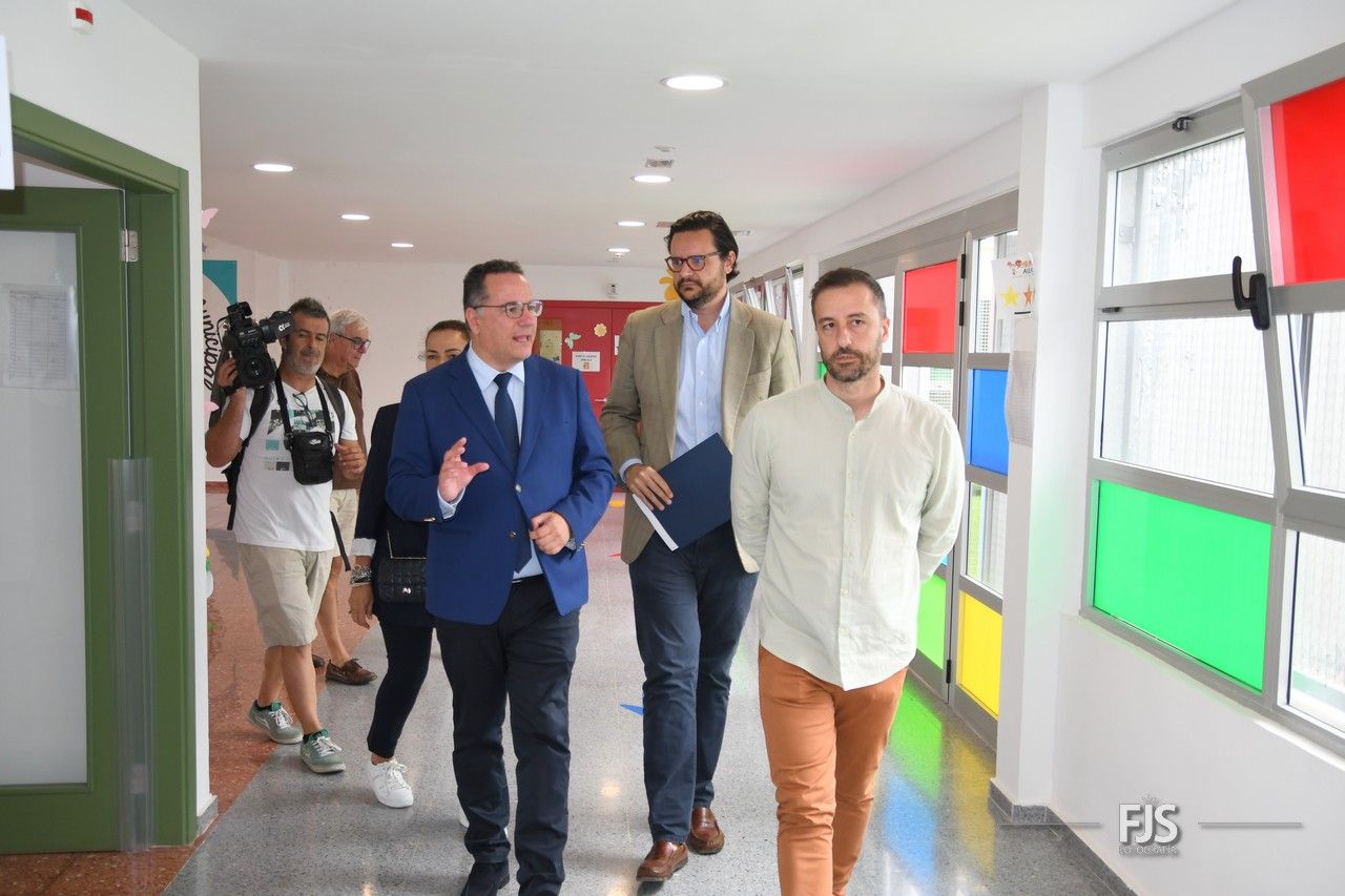 En su primera visita como responsable del departamento regional de Educación, el consejero Poli Suárez (PP) se desplazó hasta Las Remudas para conocer de primera mano la escuela infantil municipal de este barrio de Telde. Durante el acto, estuvo acompañado por el propio alcalde, Juan Antonio Peña (Ciuca), por el vicealcalde Sergio Ramos (PP) y por la concejala de Servicios Sociales, Adela Álvarez (PP).