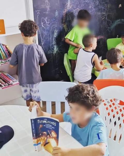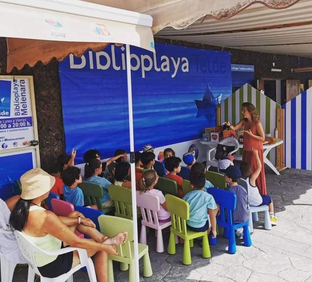 Los niños y niñas que participan este mes en el campamento Costa Verano, en la costa de Telde, disfrutaron este miércoles de una sesión de cuentos en la Biblioplaya de Melenara, en la que los protagonistas fueron los lobos.