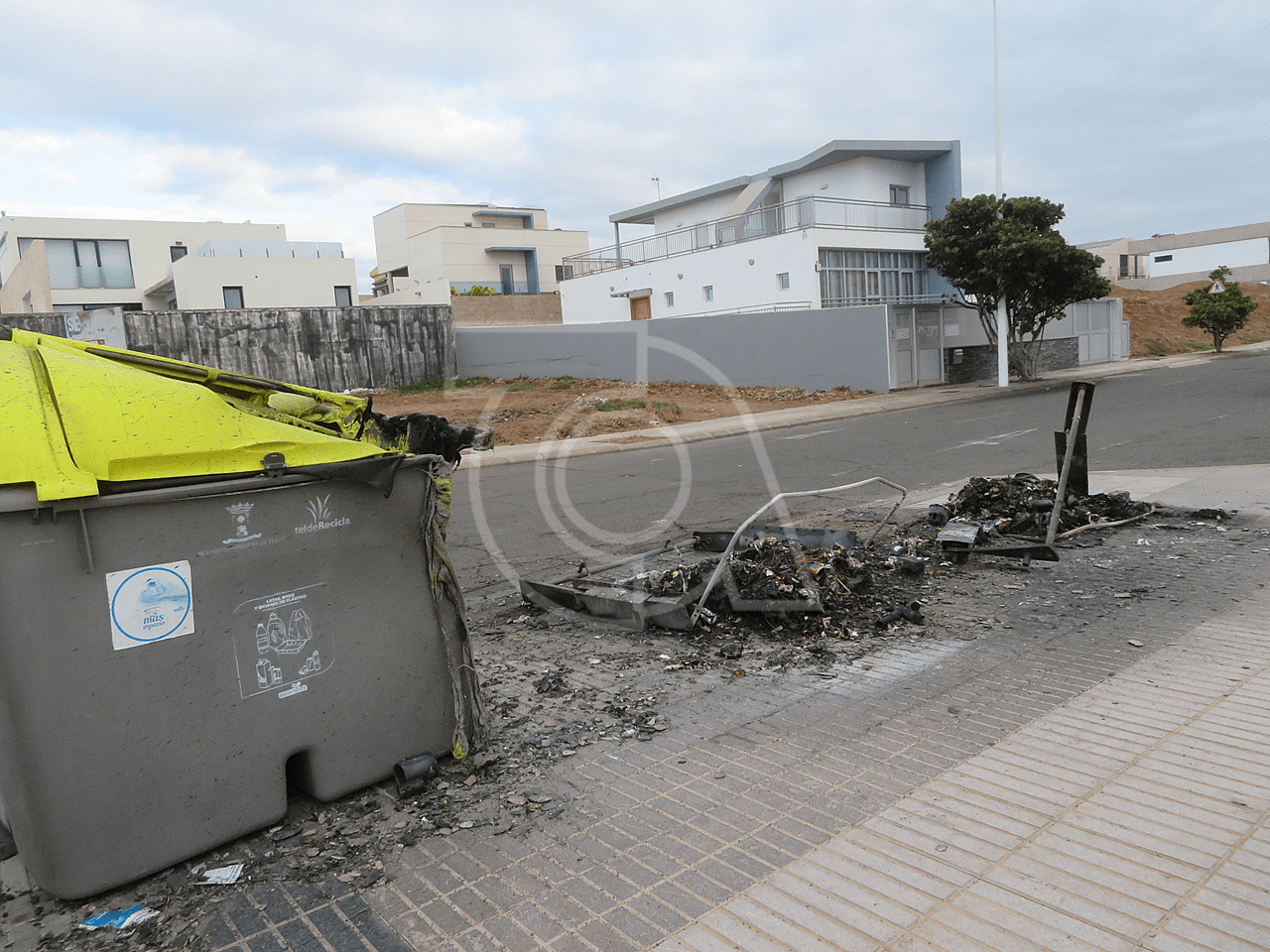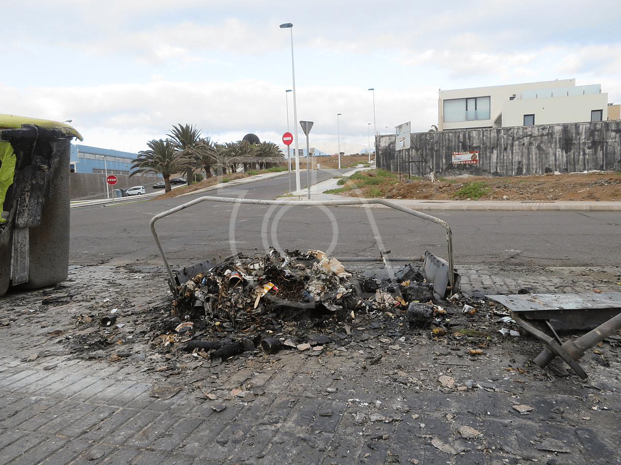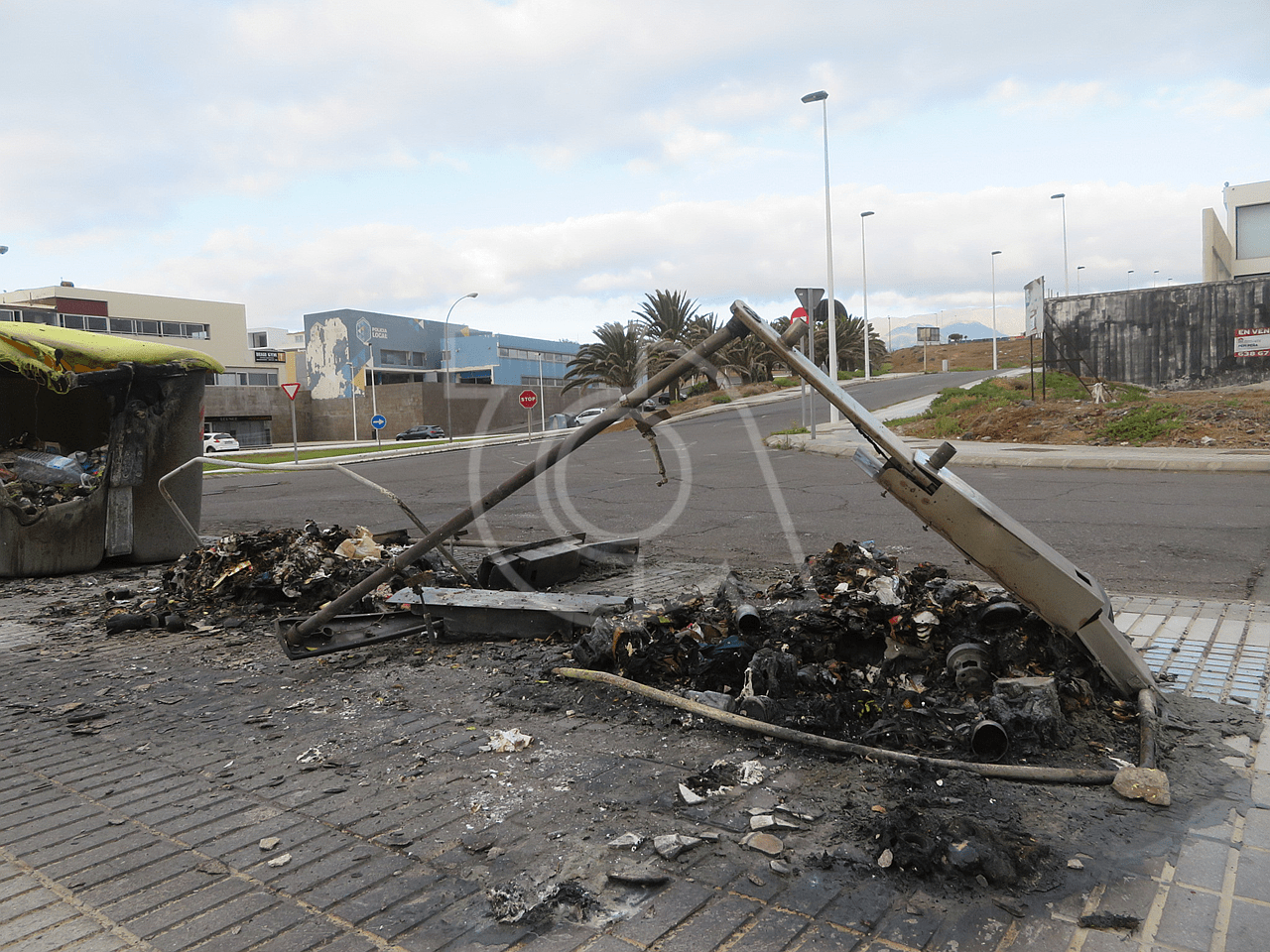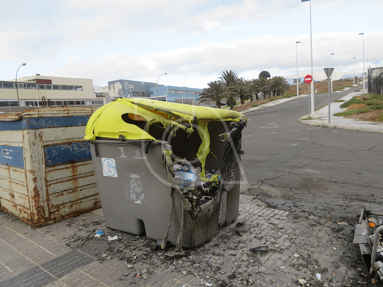 Varios contenedores de plástico destinados a la recogida de residuos orgánicos ardieron esta madrugada en La Garita, en las inmediaciones del colegio público, en la calle de Durero.