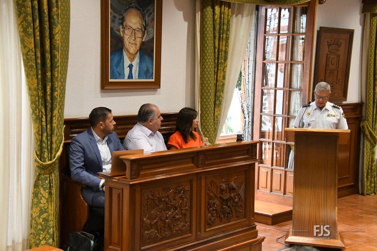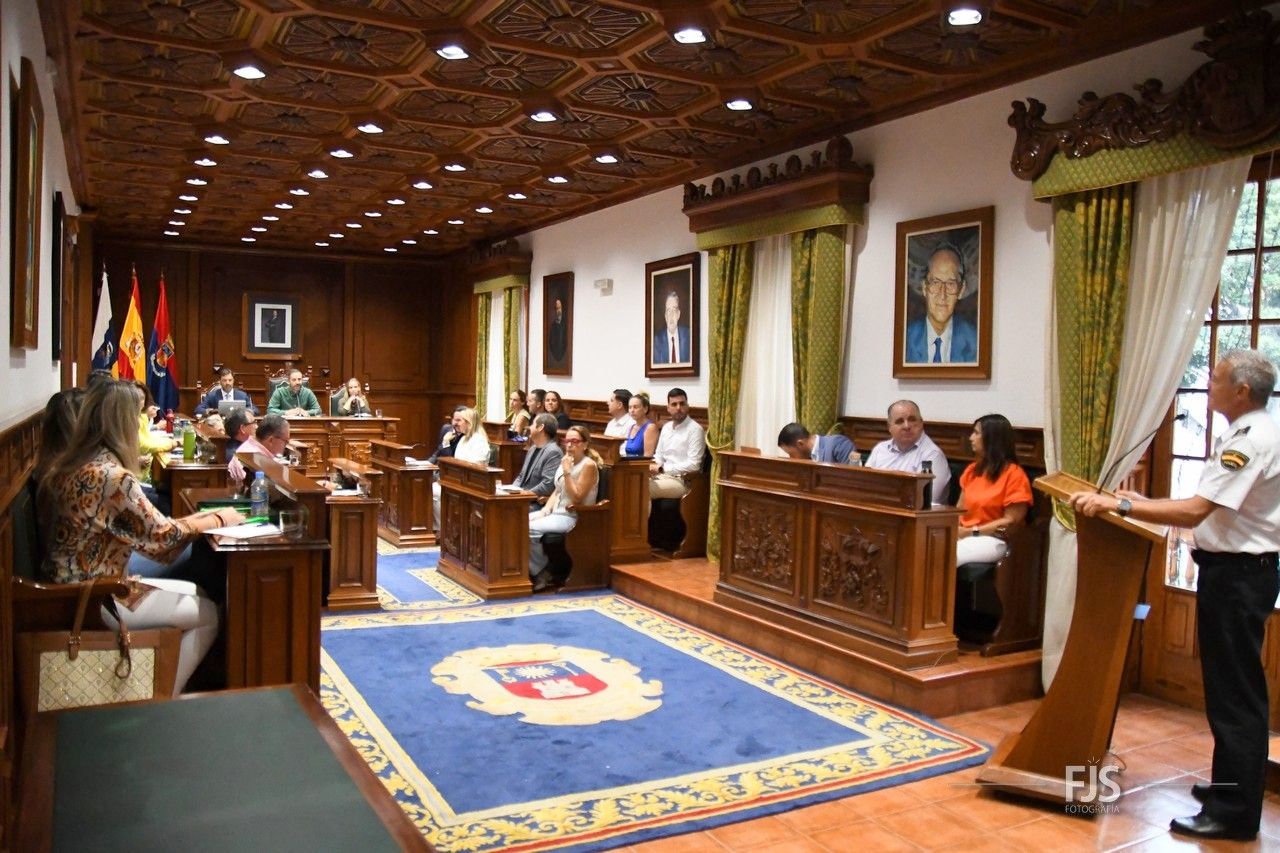 El comisario jefe de la Policía Nacional de Telde, Guillermo León Valido, ha sido el responsable este viernes de leer el manifiesto institucional por las víctimas de la violencia de género en el primer Pleno ordinario del Ayuntamiento de Telde de este mandato.